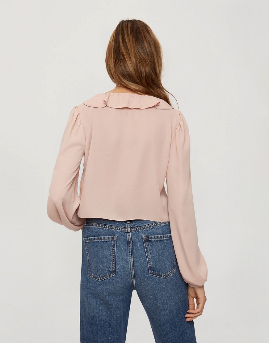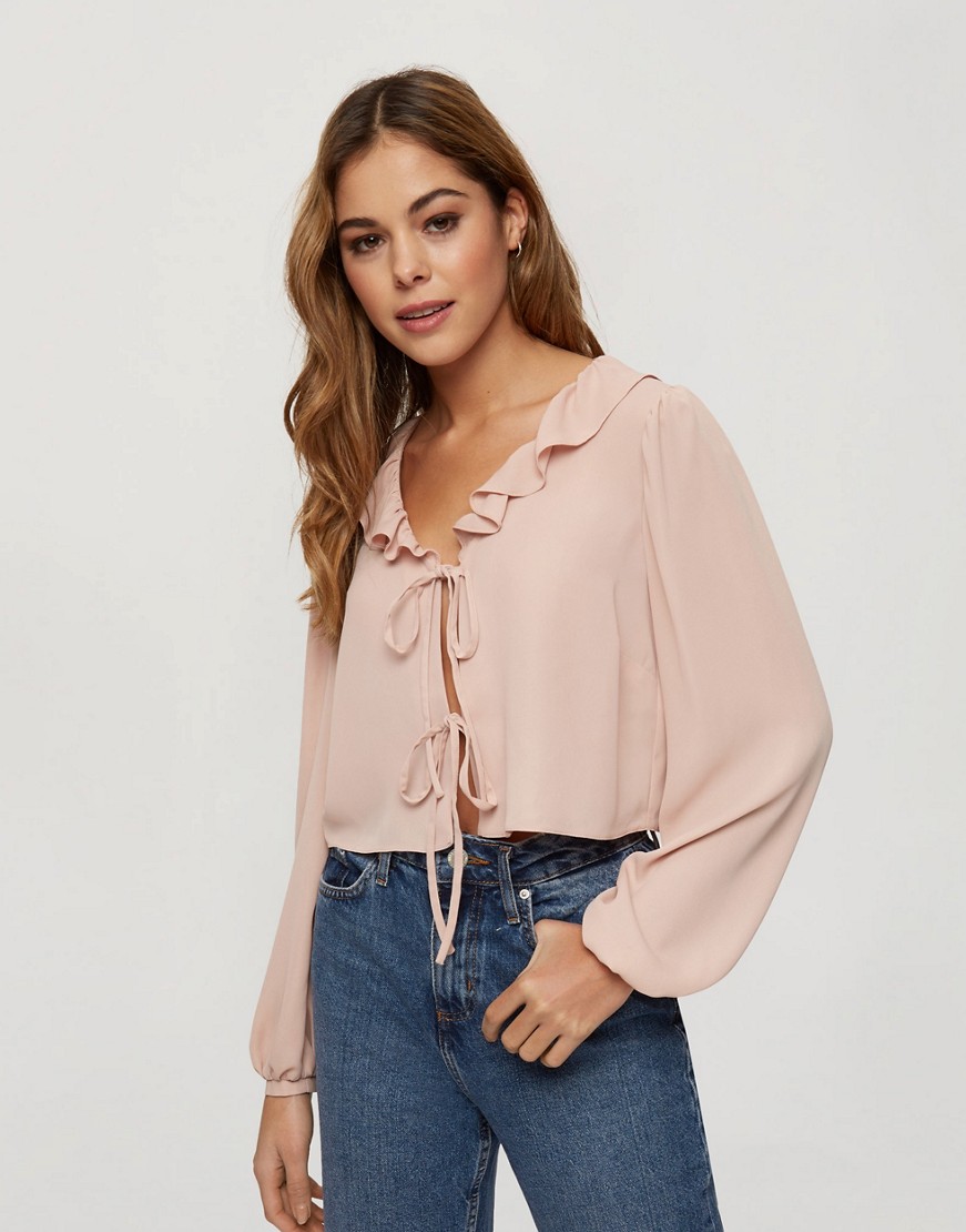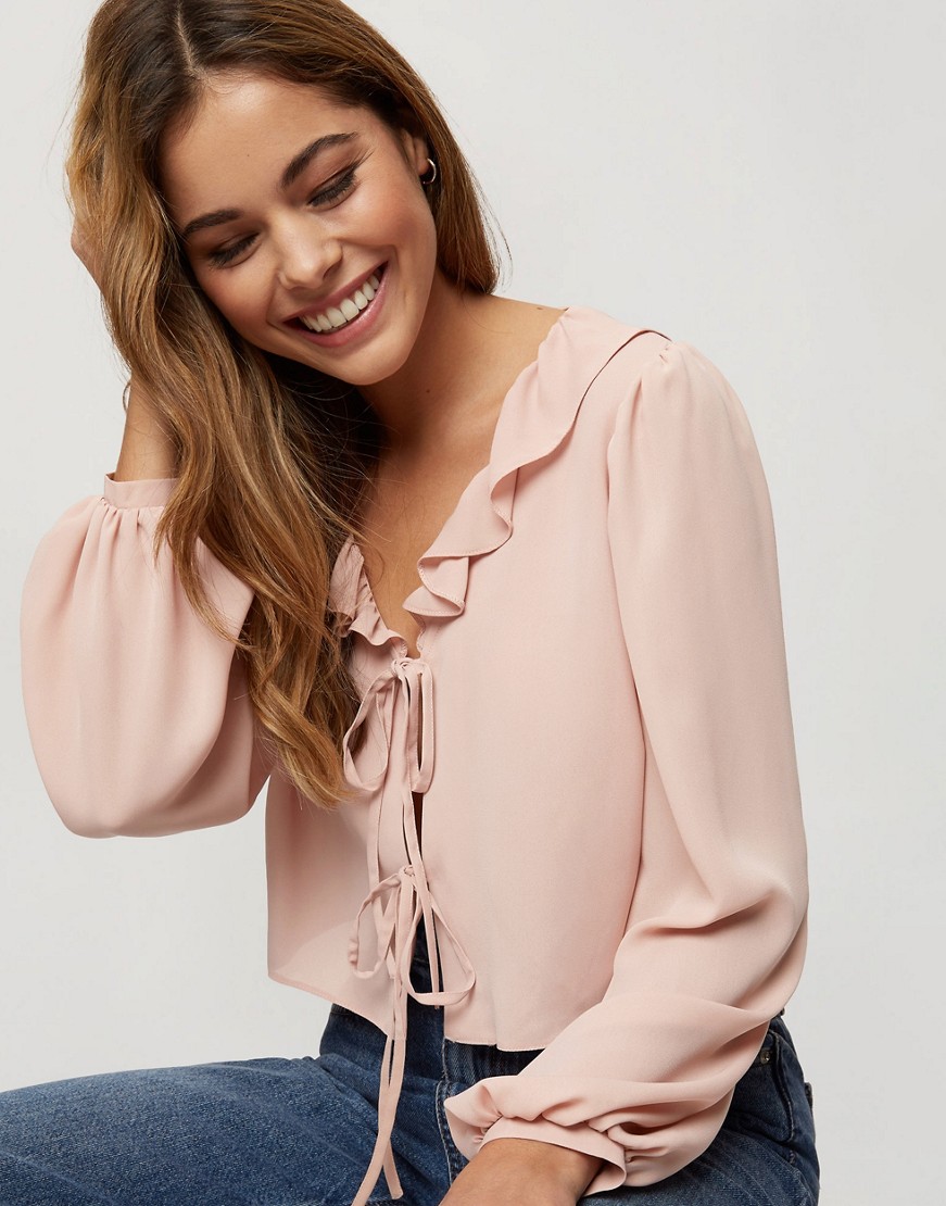 Miss Selfridge pudroworóżowa bluzka damska z wiązaniem z przodu i falbanką 38