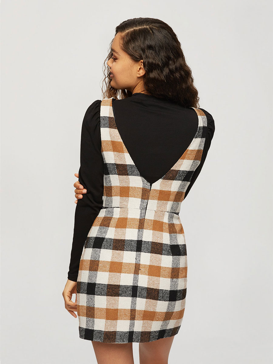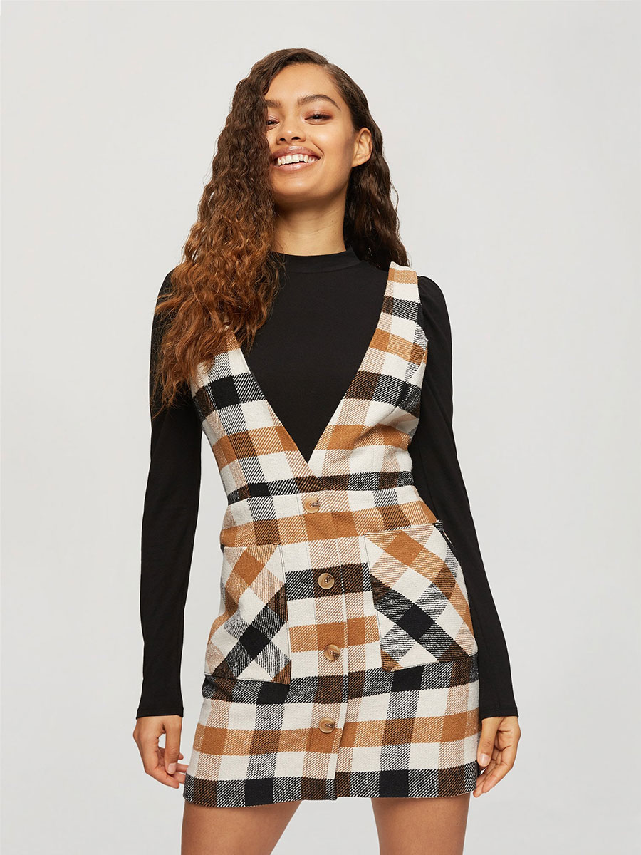 Miss Selfridge sukienka damska w kratę beżowa 40