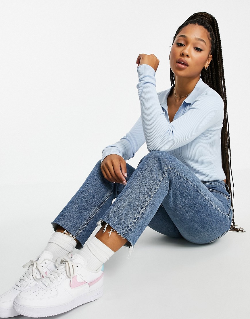 - Dekolt w kształcie litery V z kołnierzykiem polo