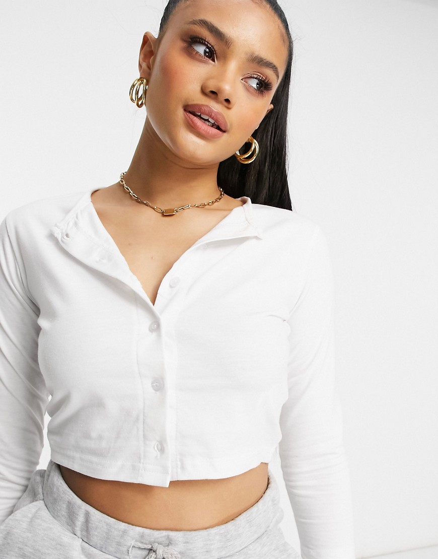 Missguided 2 pack krótkich topów z długimi rękawami na guziki z przodu czarny 38