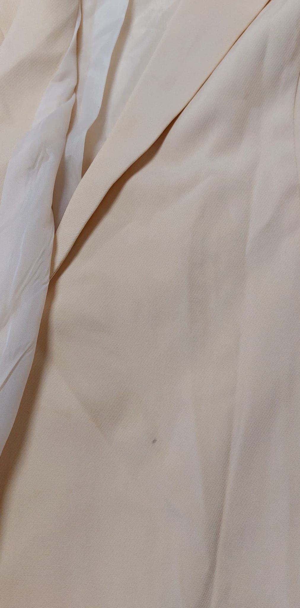 - Defekt : ciemna kropka pod zakładką spódnicy, niewidoczna podczas noszenia, zdjęcie w galerii