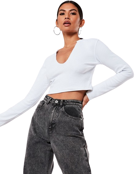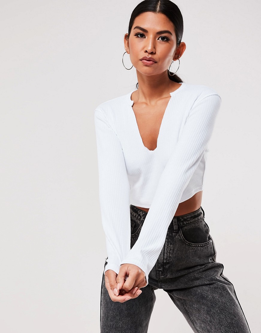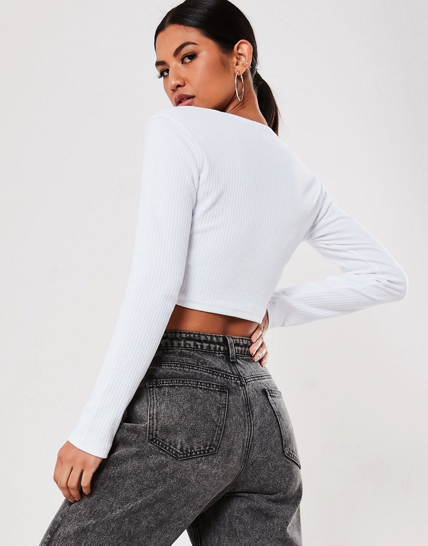 Missguided biała prążkowana krótka bluzka damska z wycięciem pod szyją 38