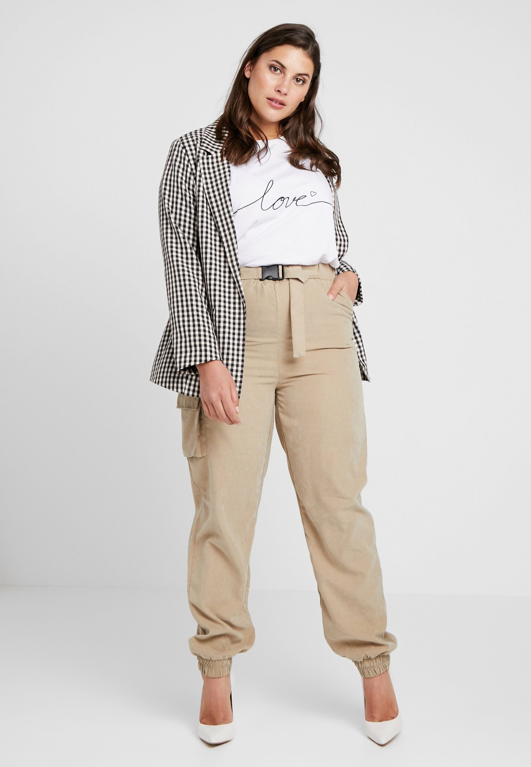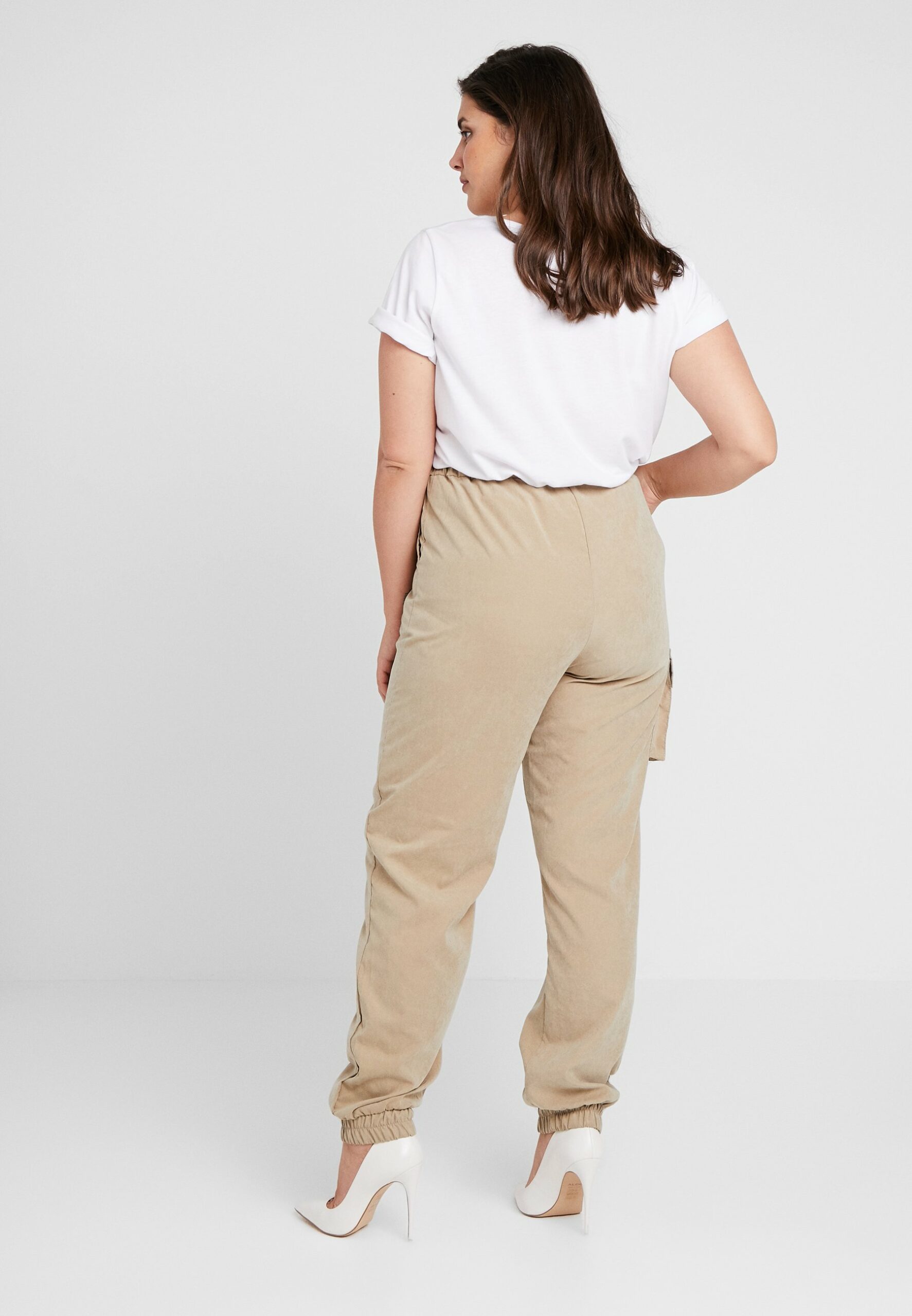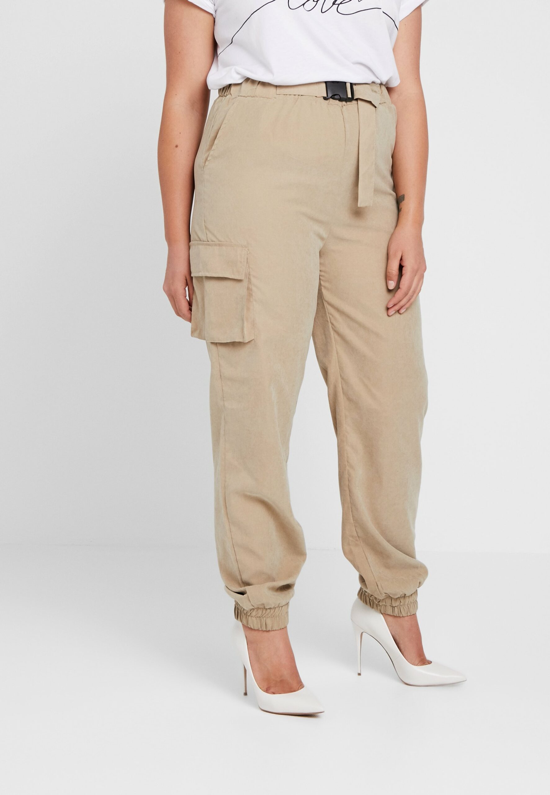 Missguided damskie beżowe spodnie joggery z kieszeniami na gumce 46