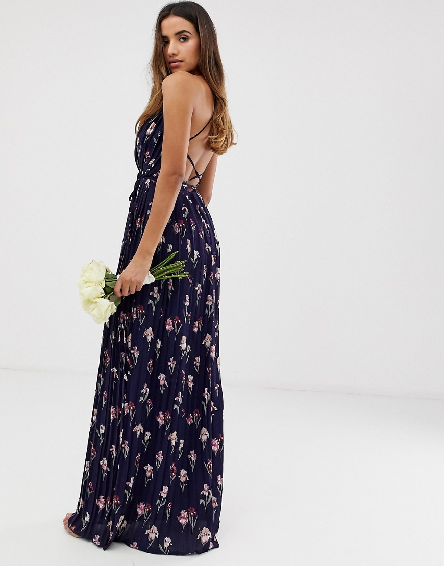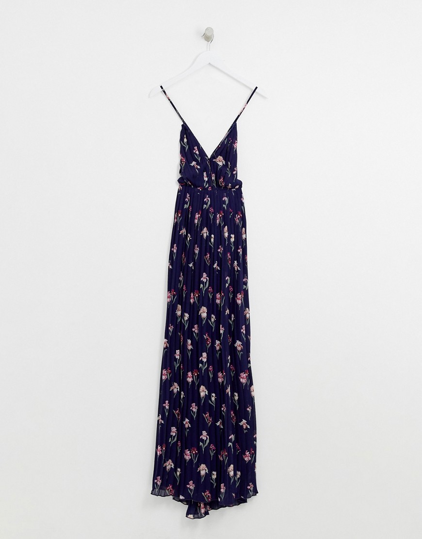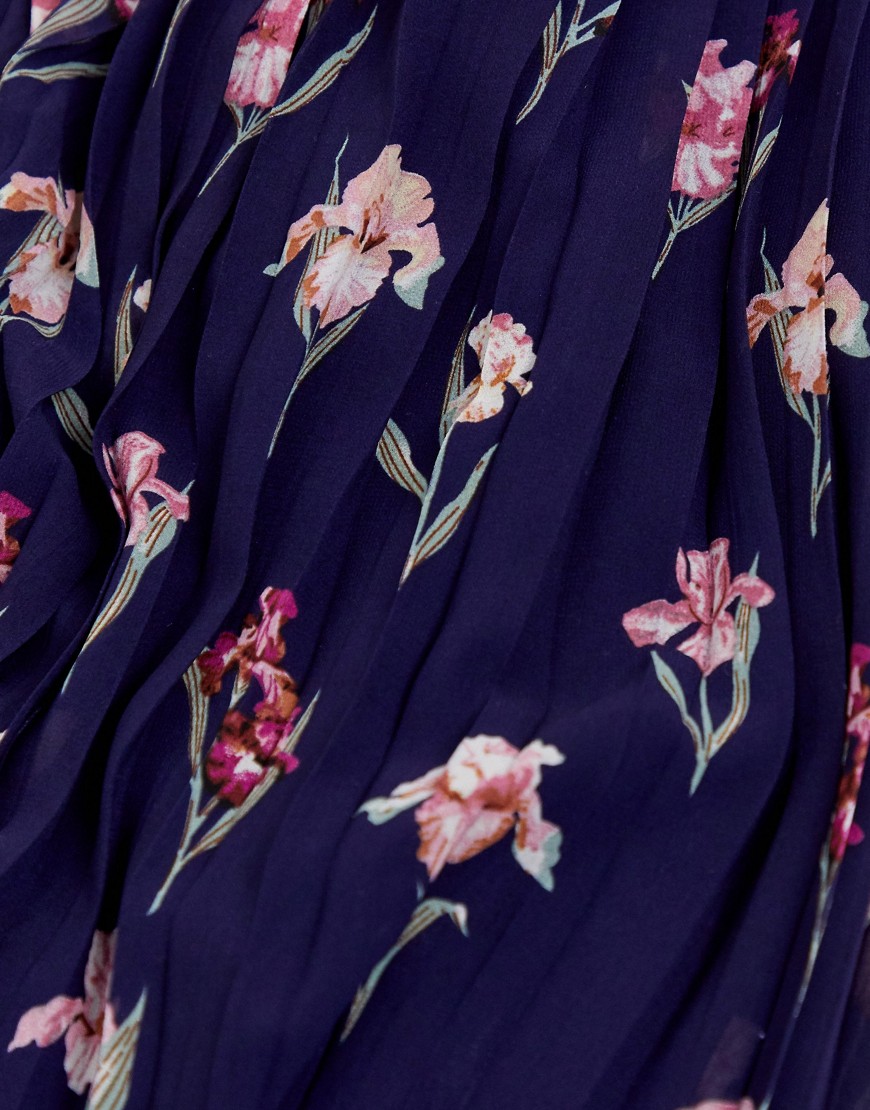 Missguided granatowa plisowana sukienka maxi na ramiączkach w kwiaty 38