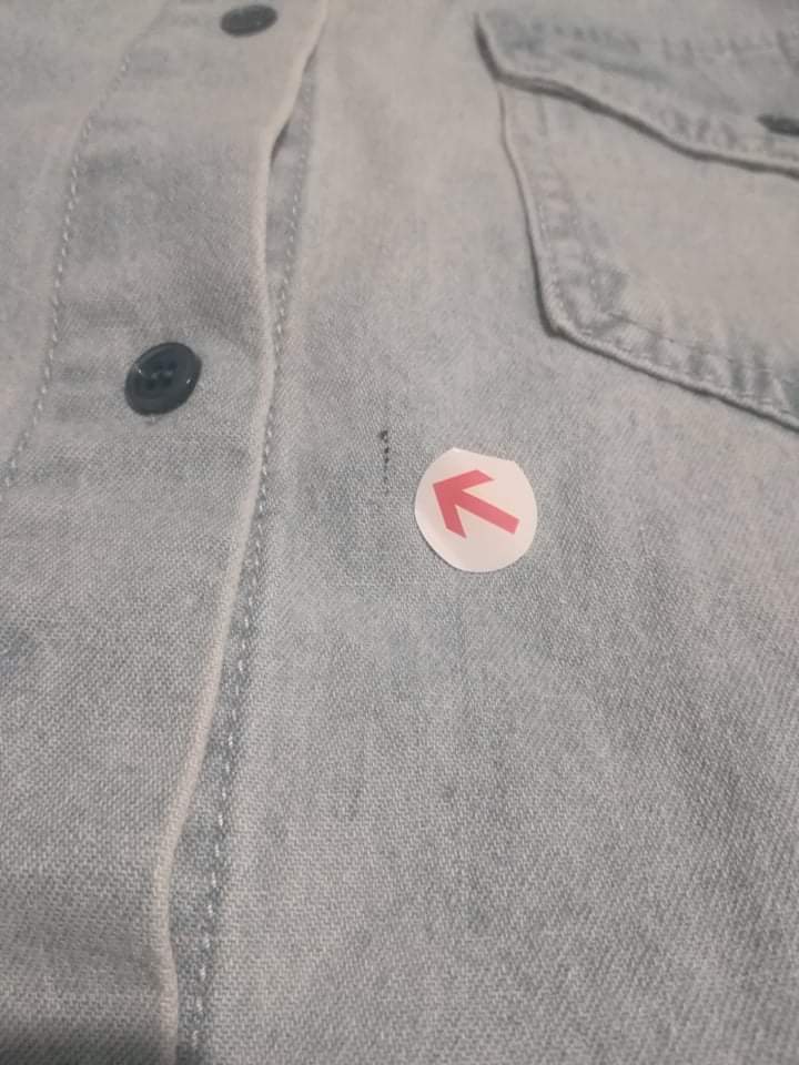 - defekt: skaza fabryczna z przodu po lewej stronie koszuli