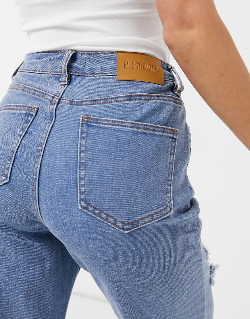 Missguided Niebieskie, elastyczne mom jeans z rozdarciami 38