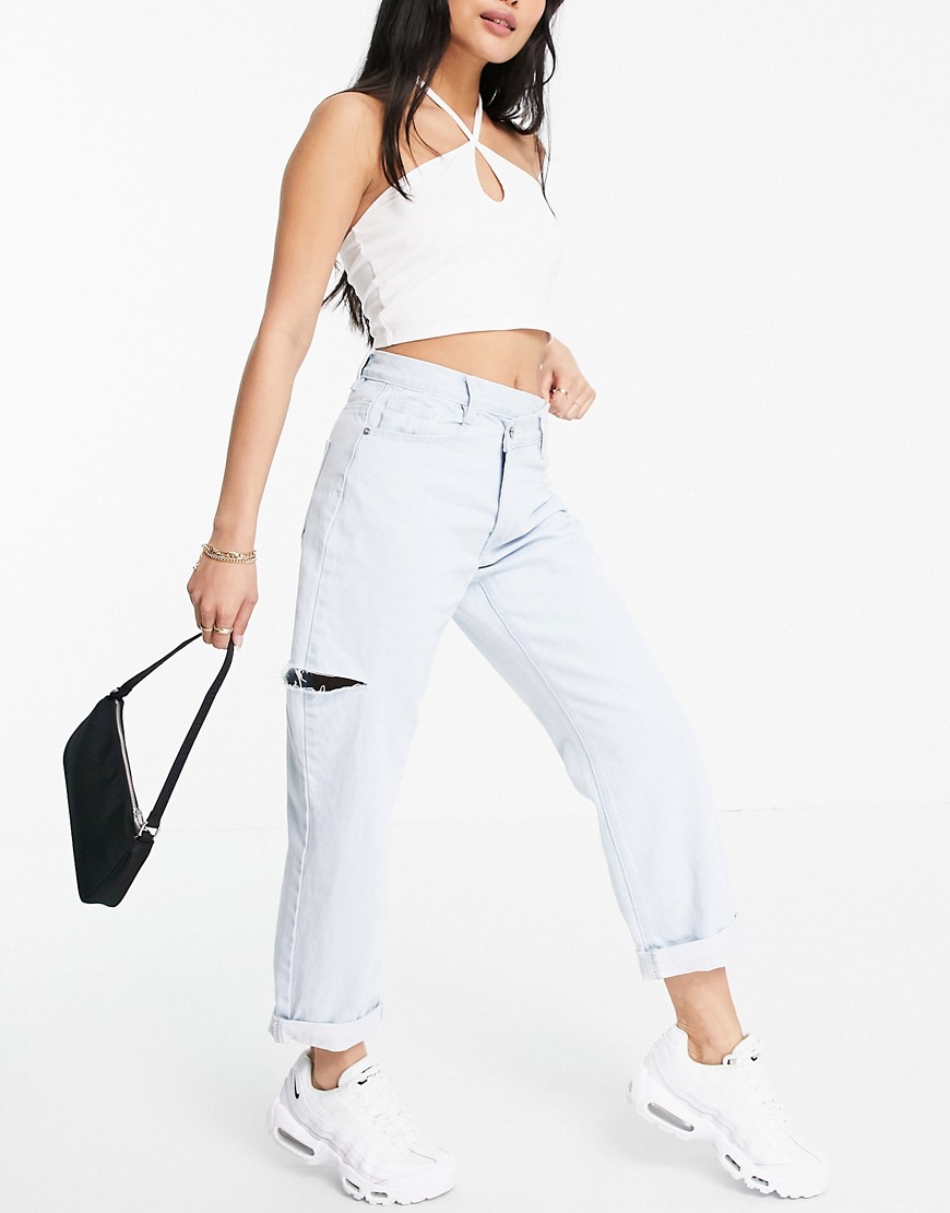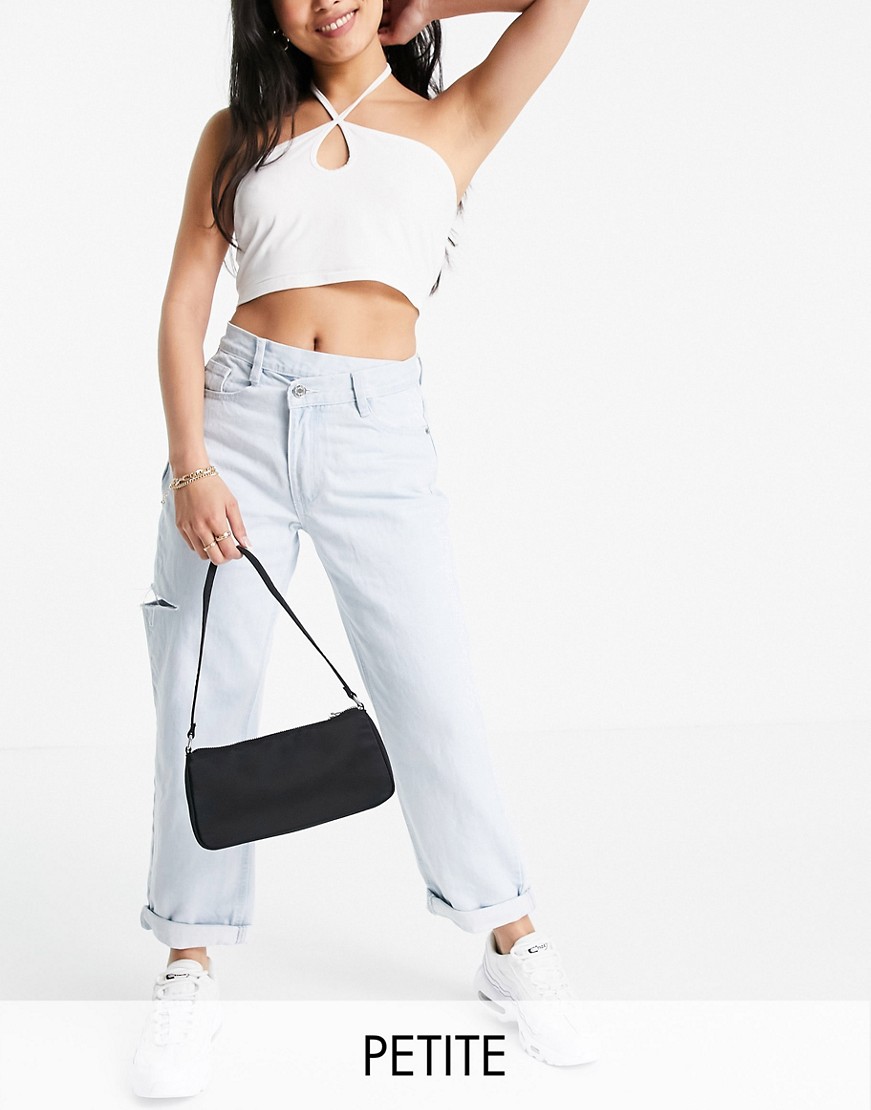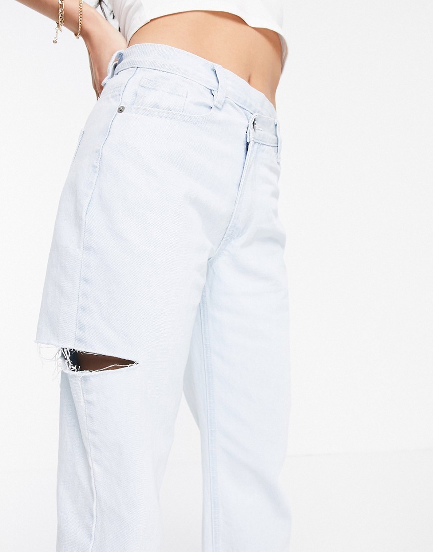 Missguided niebieskie jeansy typu dad z asymetryczną talią 38