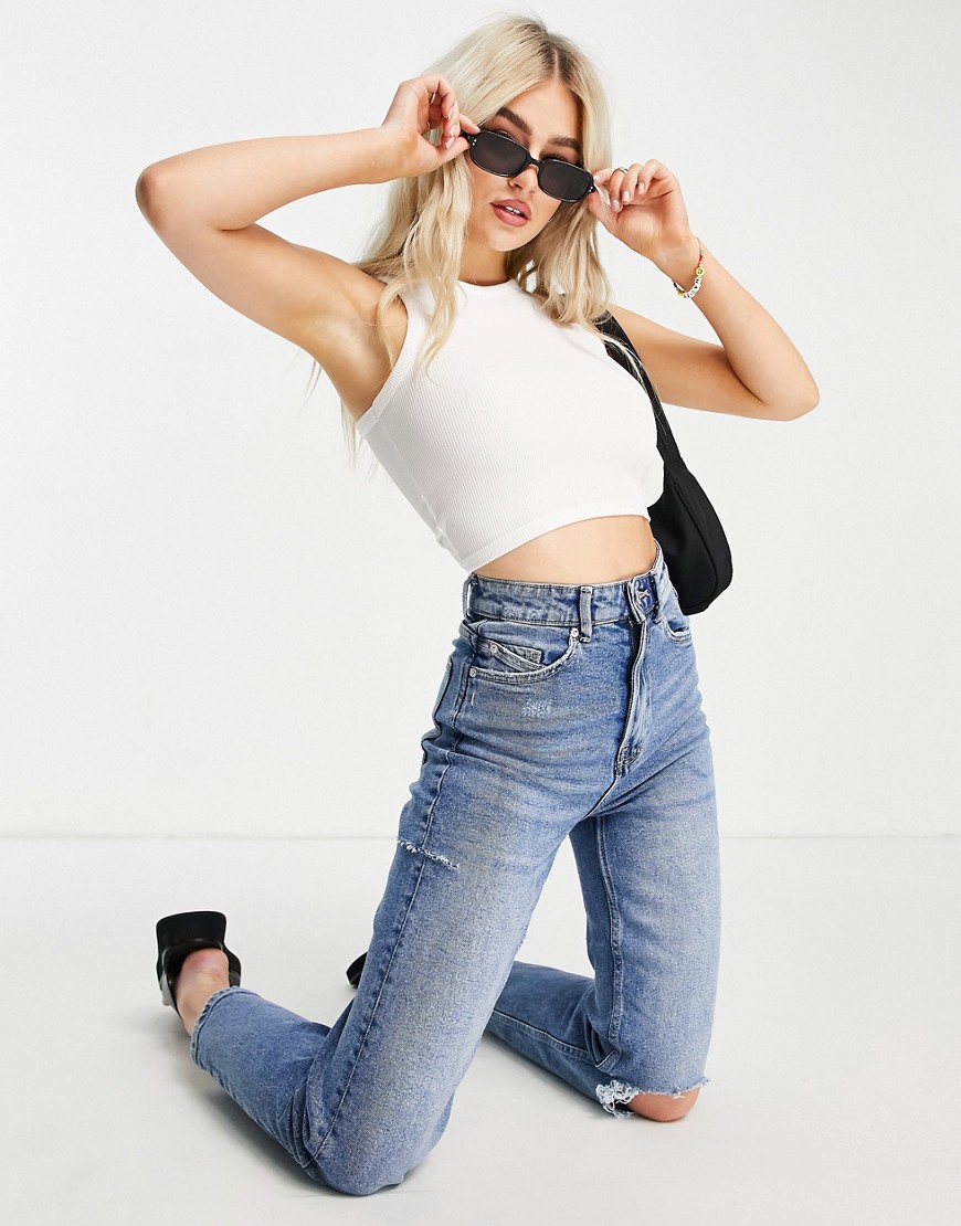 Missguided Petite damski biały prążkowany top bez rękawów S
