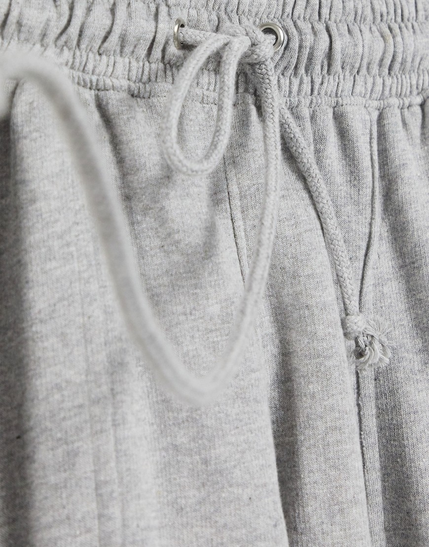 - Luźny fason w udach zwężający się wzdłuż nogawek