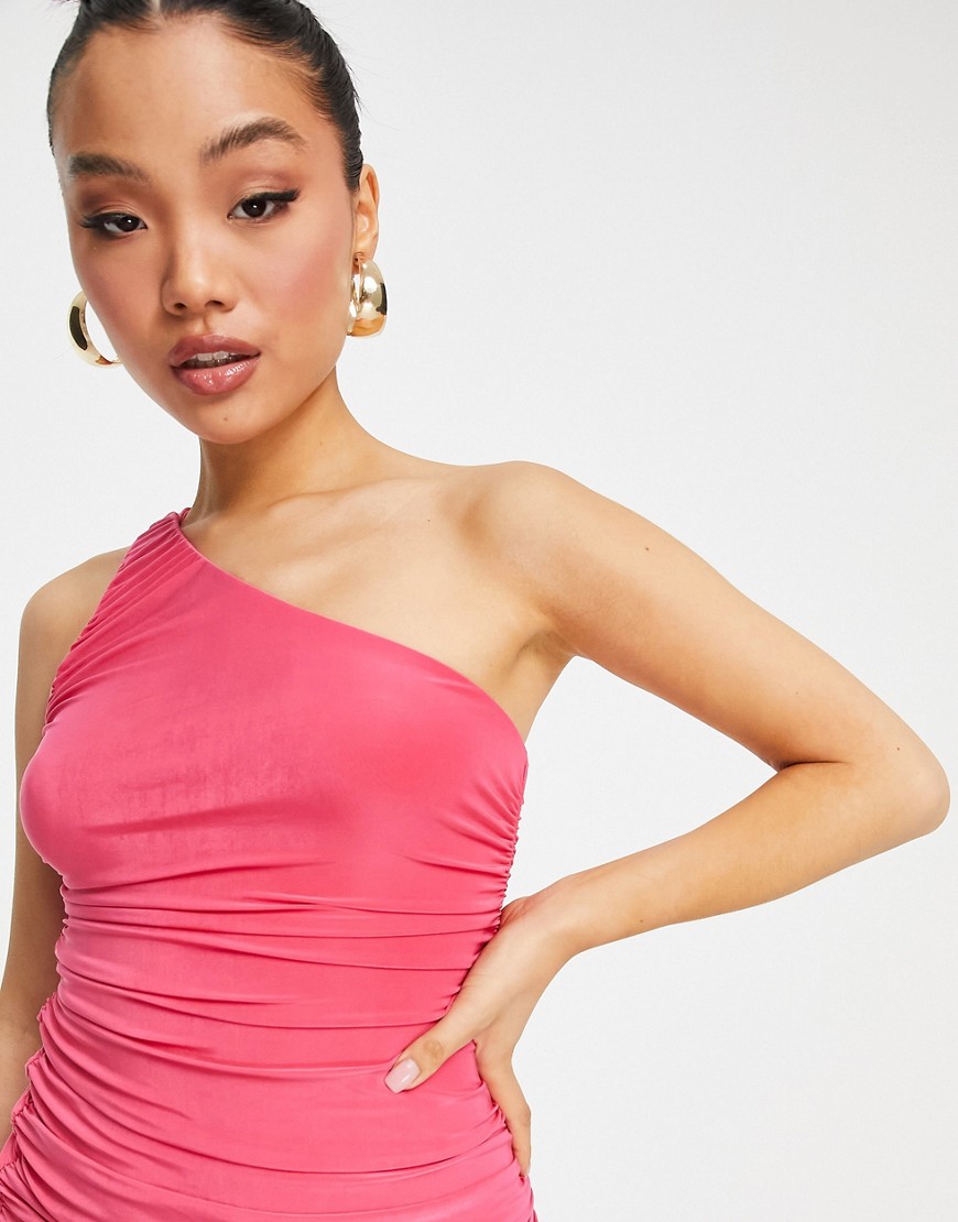 Missguided Petite różowa przylegająca sukienka na jedno ramię 38