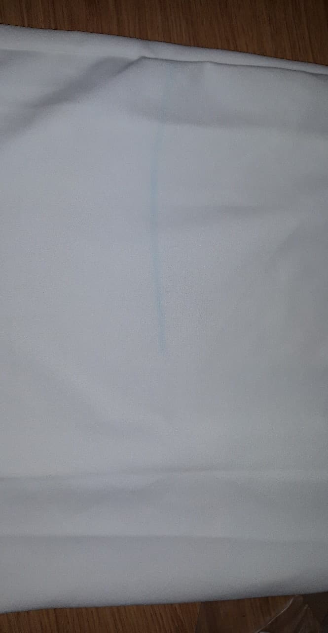 - Defekt: skaza na materiale u dołu, niebieska kreska (zdjęcie)