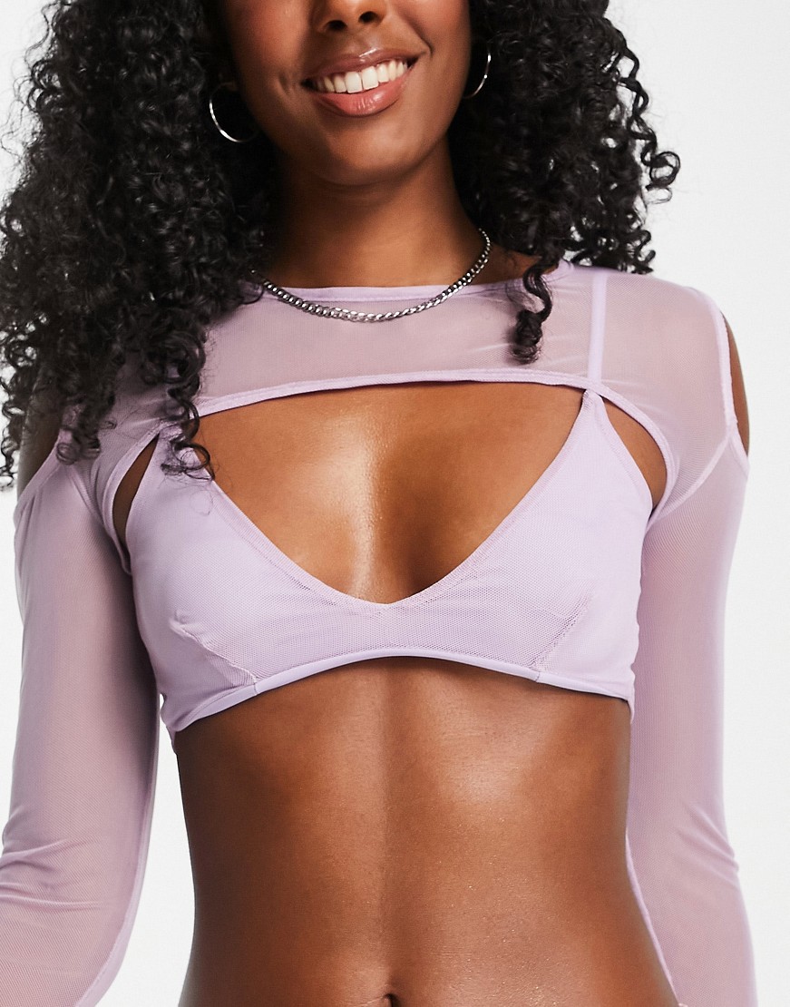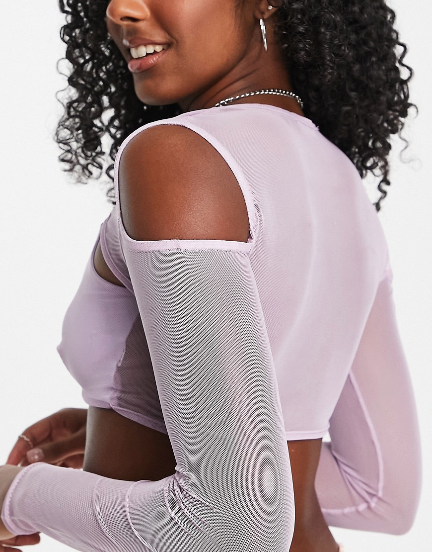 Missy Empire liliowy krótki top z siateczki długi rękaw 38