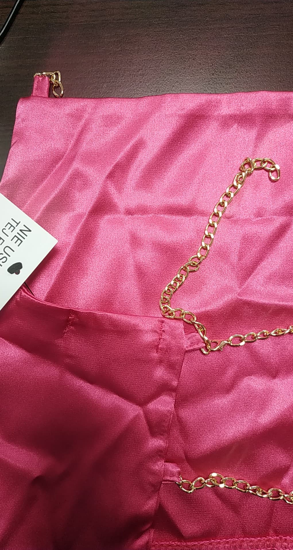 Missyempire różowy satynowy top z łańcuszkami defekt 40