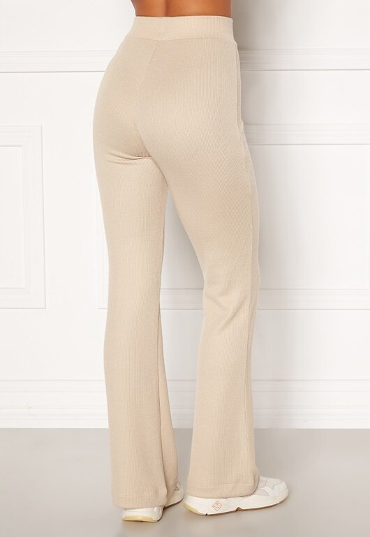 MOA MATTSSON X BUBBLEROOM Jasnobeżowe Przytulne spodnie w prążki defekt S