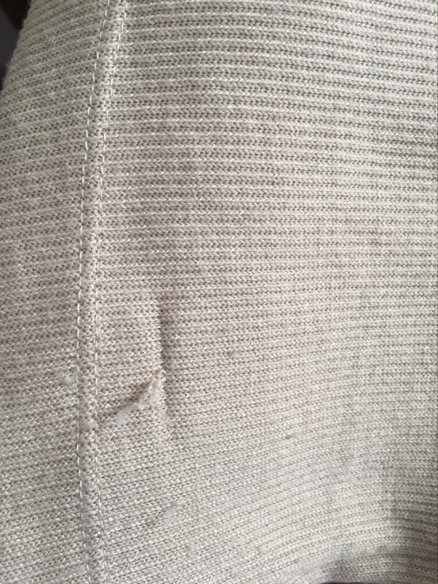 • Defekt: spodnie noszą ślady użytkowania – kulkowanie materiału na całości, zaciągnięcia materiału – zdjęcia w galerii przedmiotu.