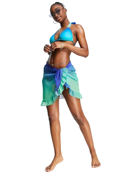 Moda Minx Szyfonowa spódniczka z falbanką w turkusowy wzór ombre defekt one size