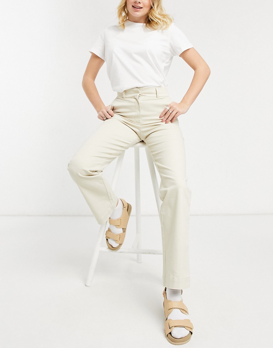 Monki Ava beżowe spodnie z szerokimi nogawkami L