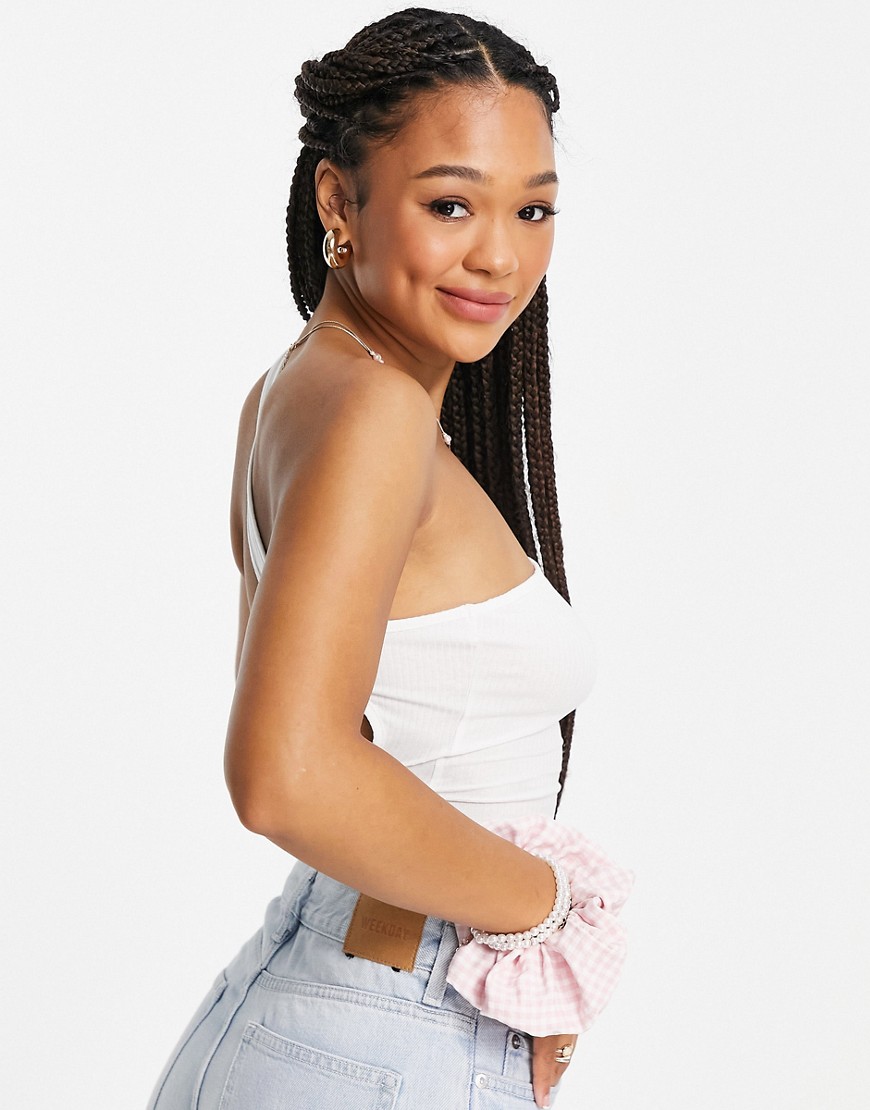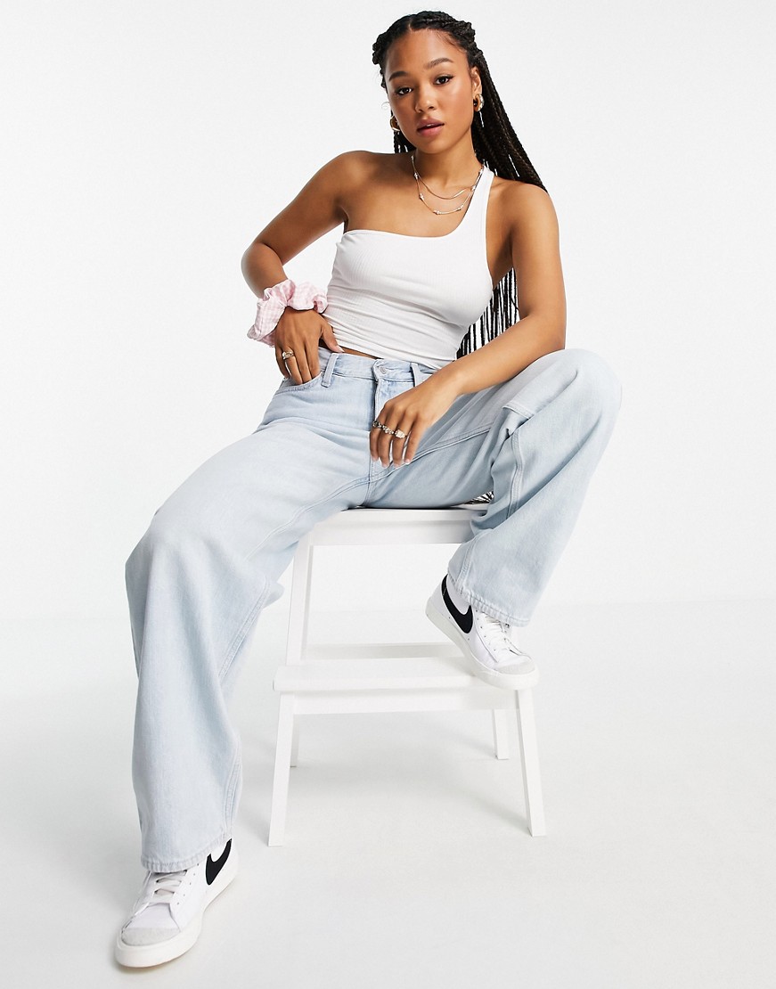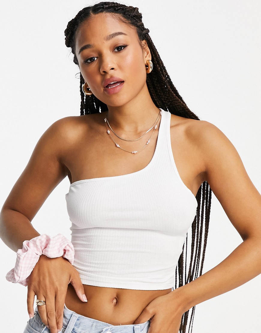 Monki biały top na jedno ramię z wycięciem S