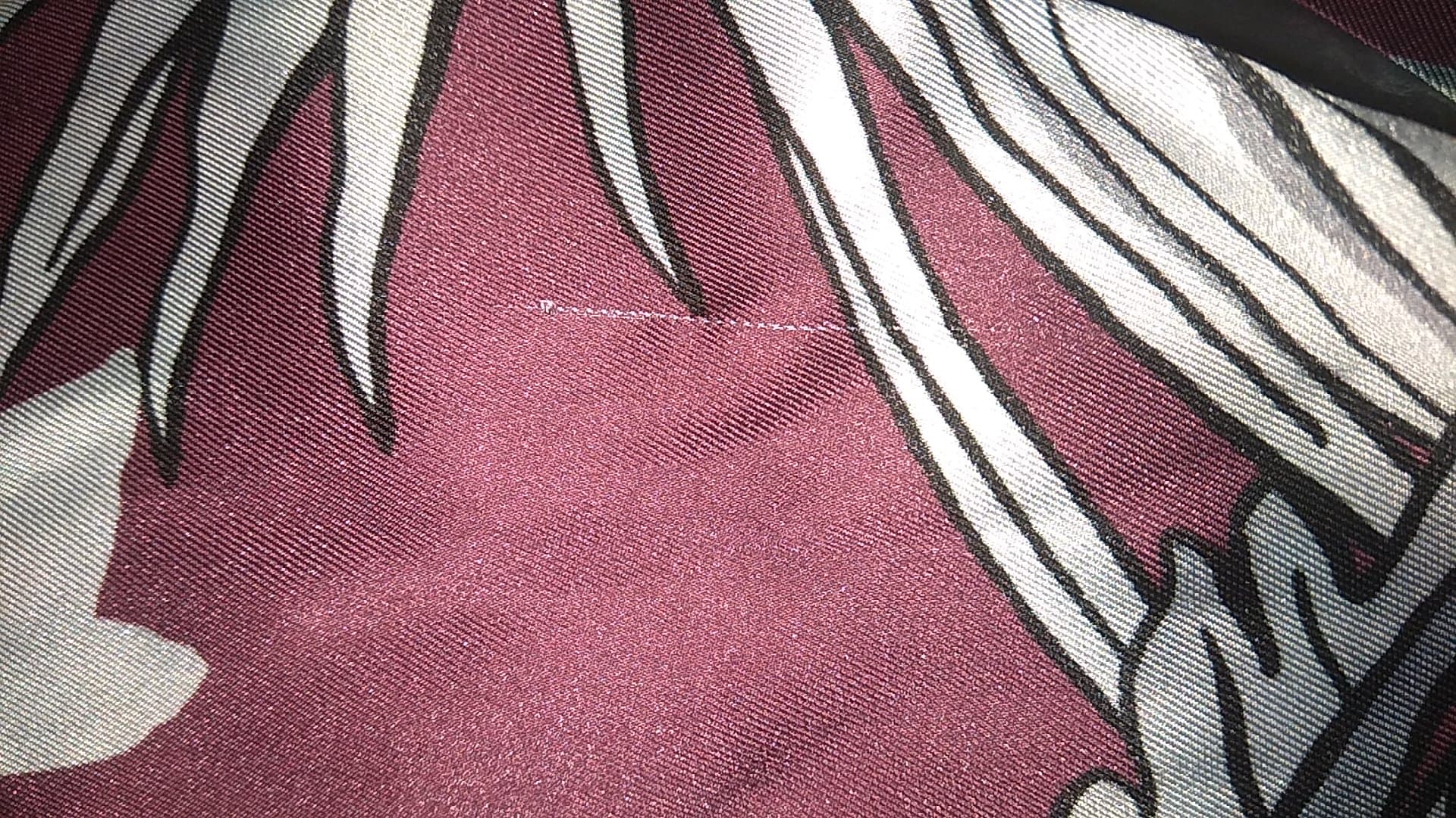- DEFEKT: zaciągnięcie z przodu po prawej stronie (zdjęcie), dziurka w podszewce w miejscu metki (od wewnętrznej strony – niewidoczna podczas noszenia)
