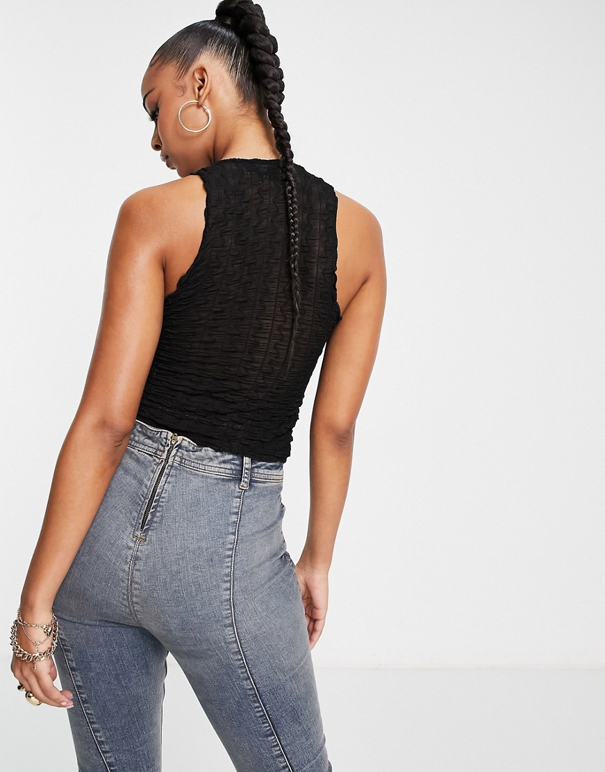 Motel Y2K czarny krótki top z wiązaniem na przodzie XXS