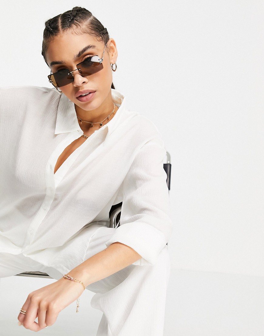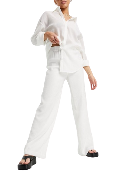 NA-KD białe spodnie na lato o luźnym kroju 36