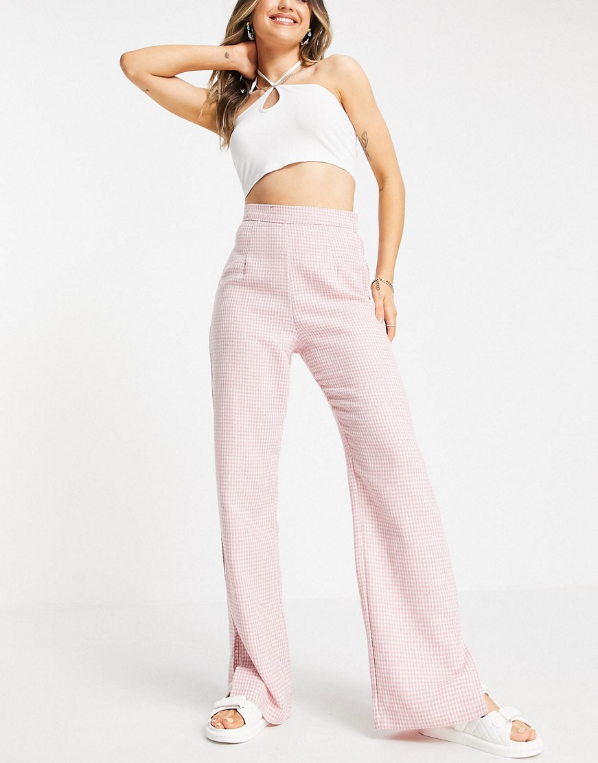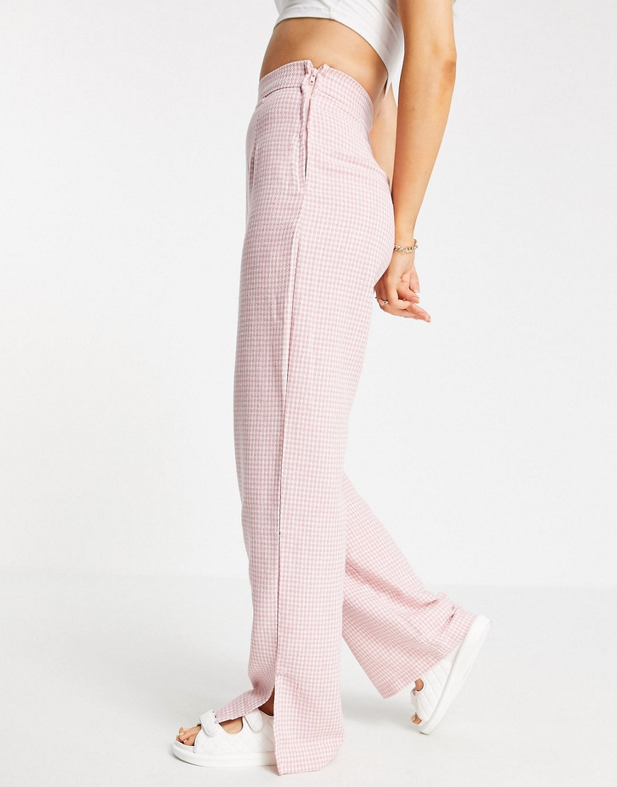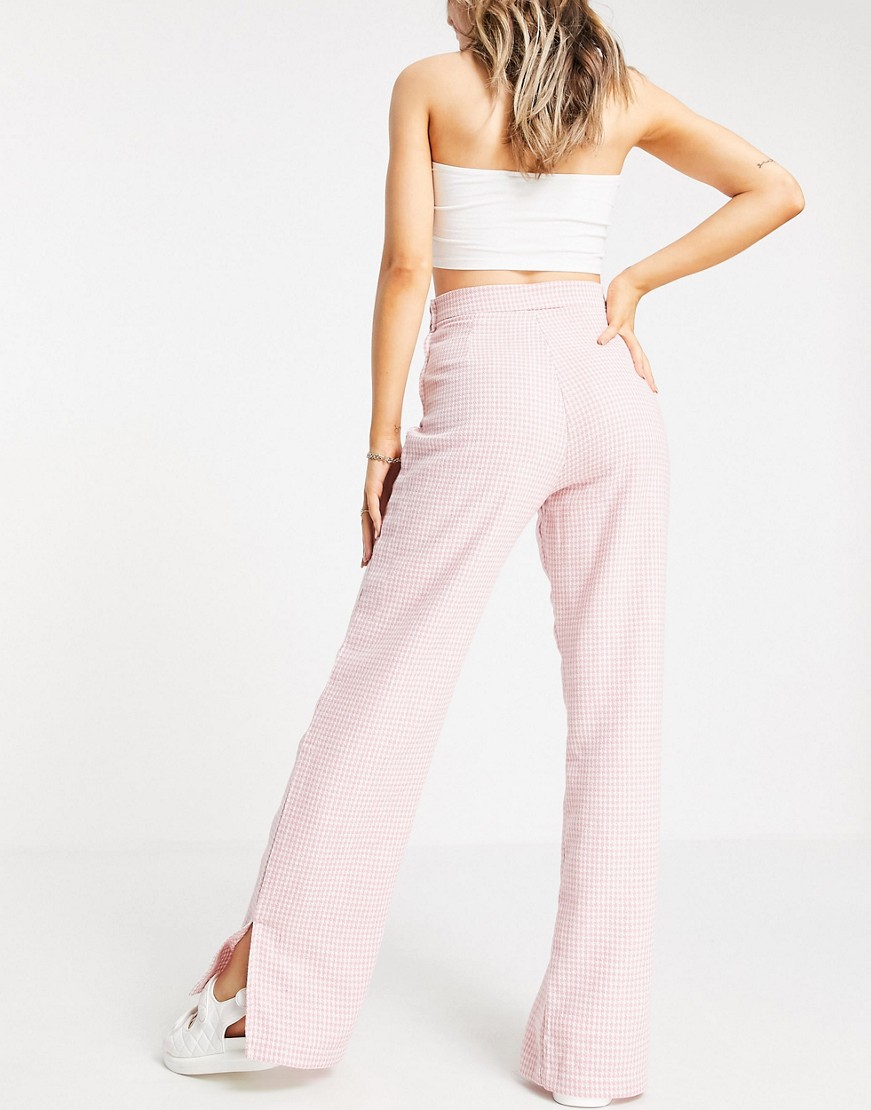 NaaNaa dopasowane spodnie z rozcięciami w różową pepitkę 42
