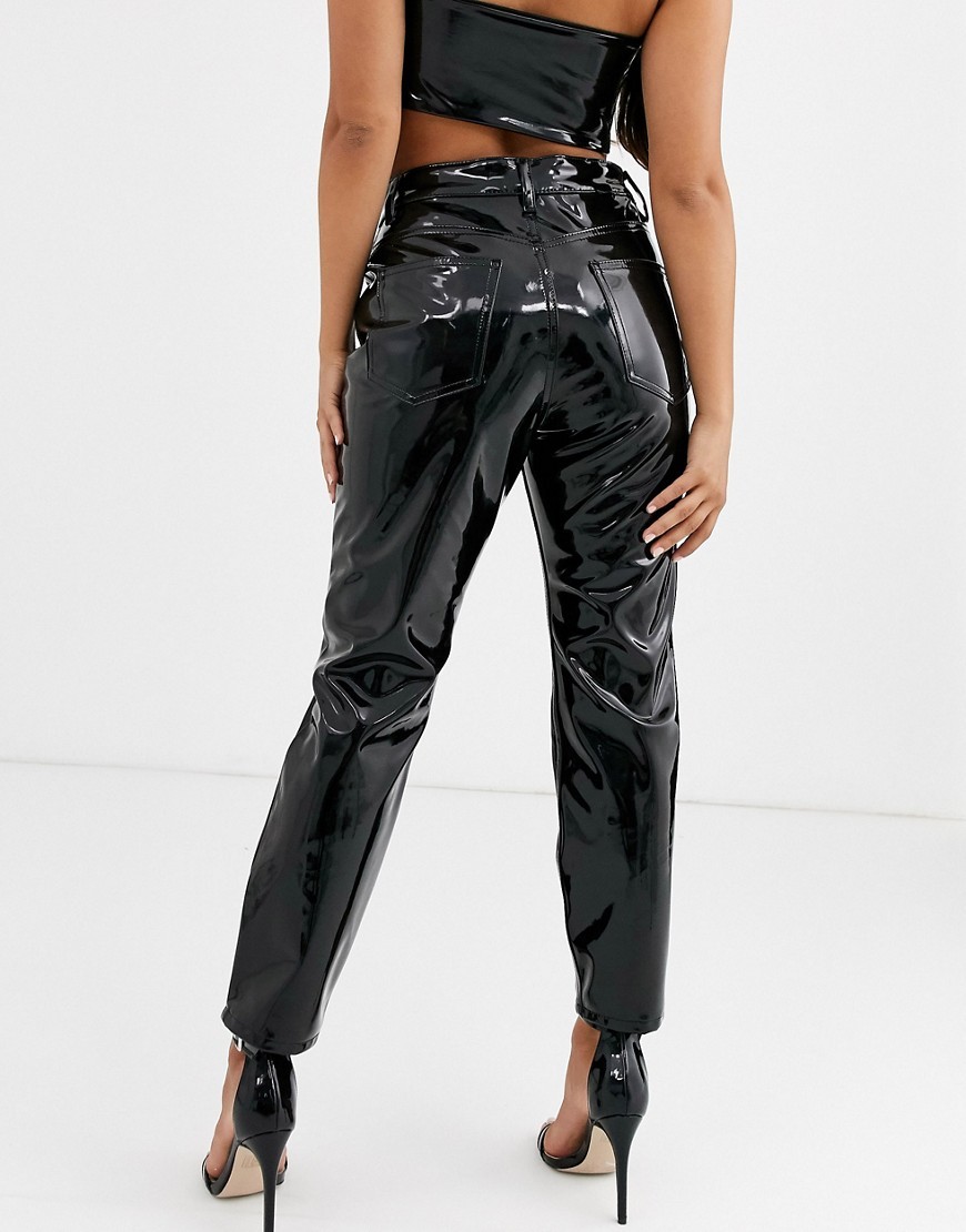 Nabłyszczane czarne spodnie damskie slim W25 L28