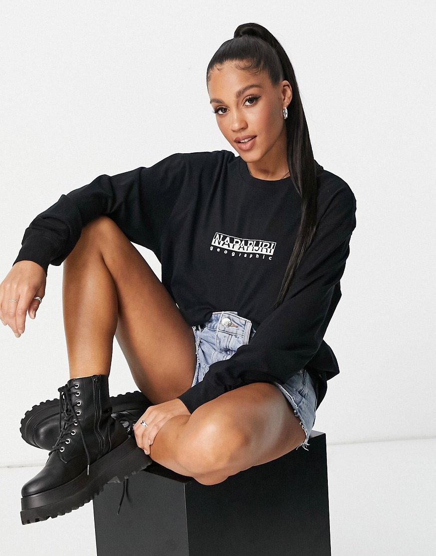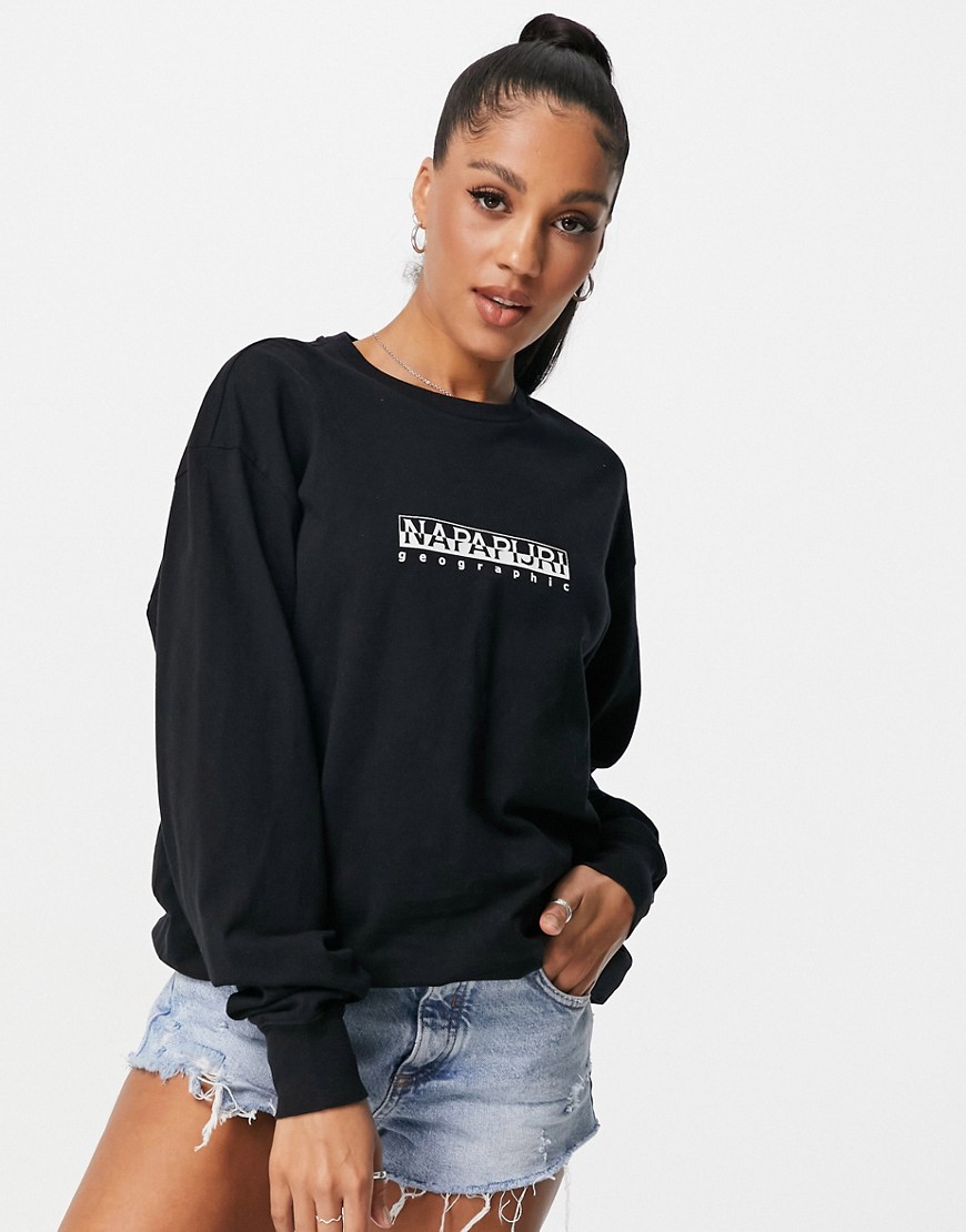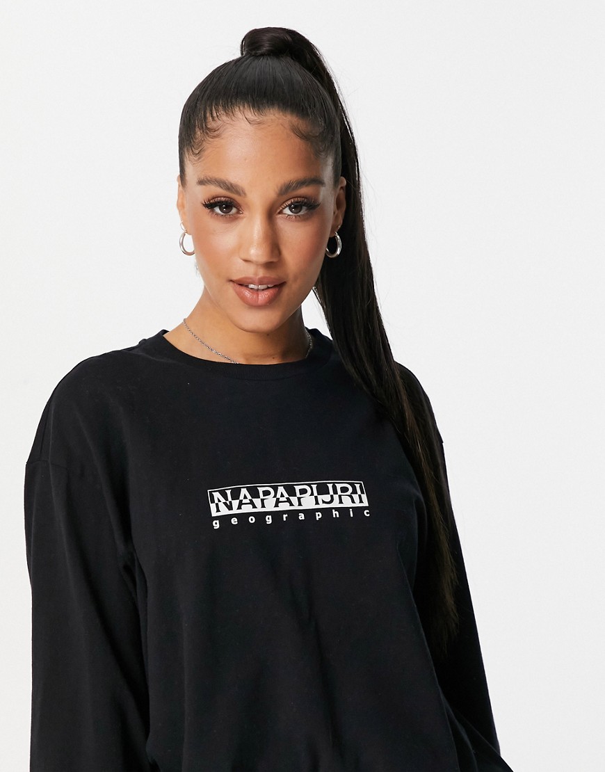 Napapijri czarny T-shirt oversize z długimi rękawami i logo L