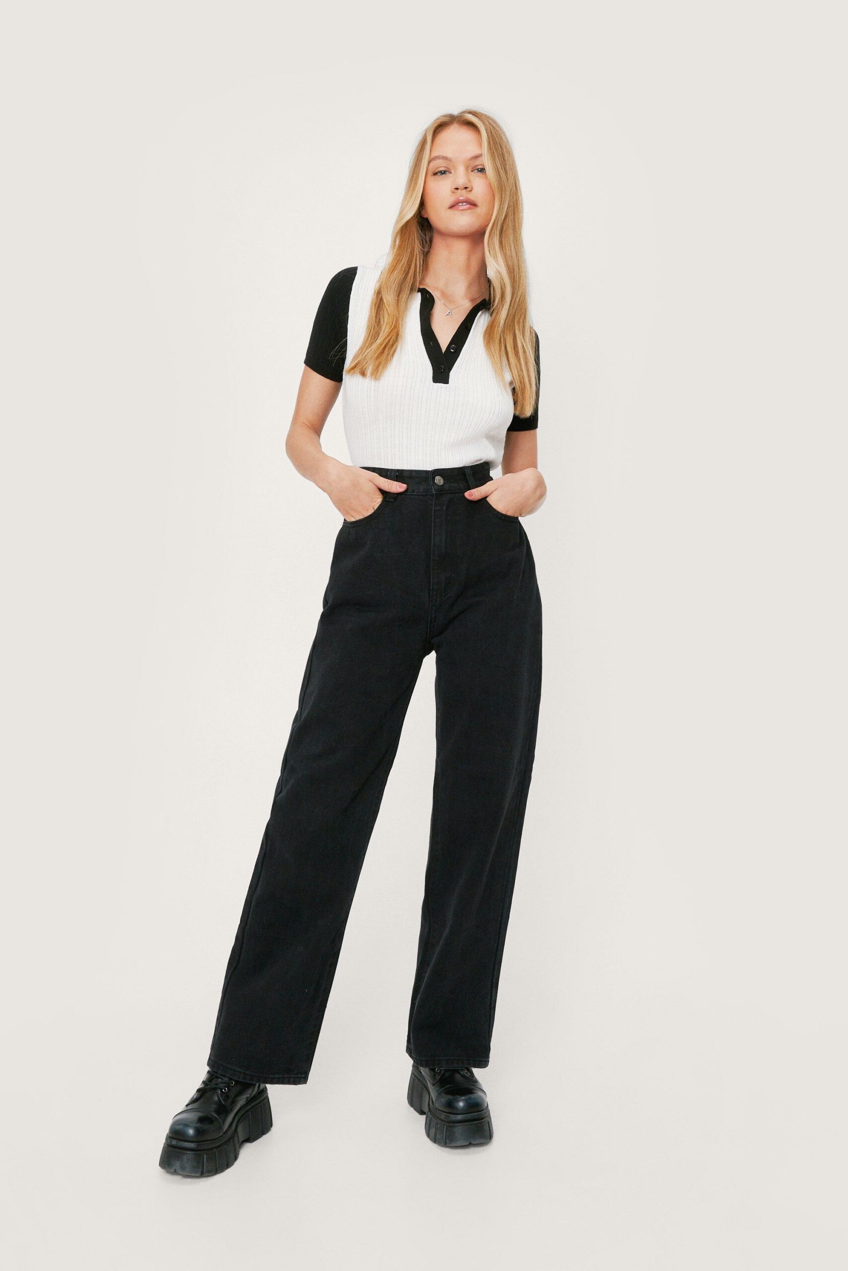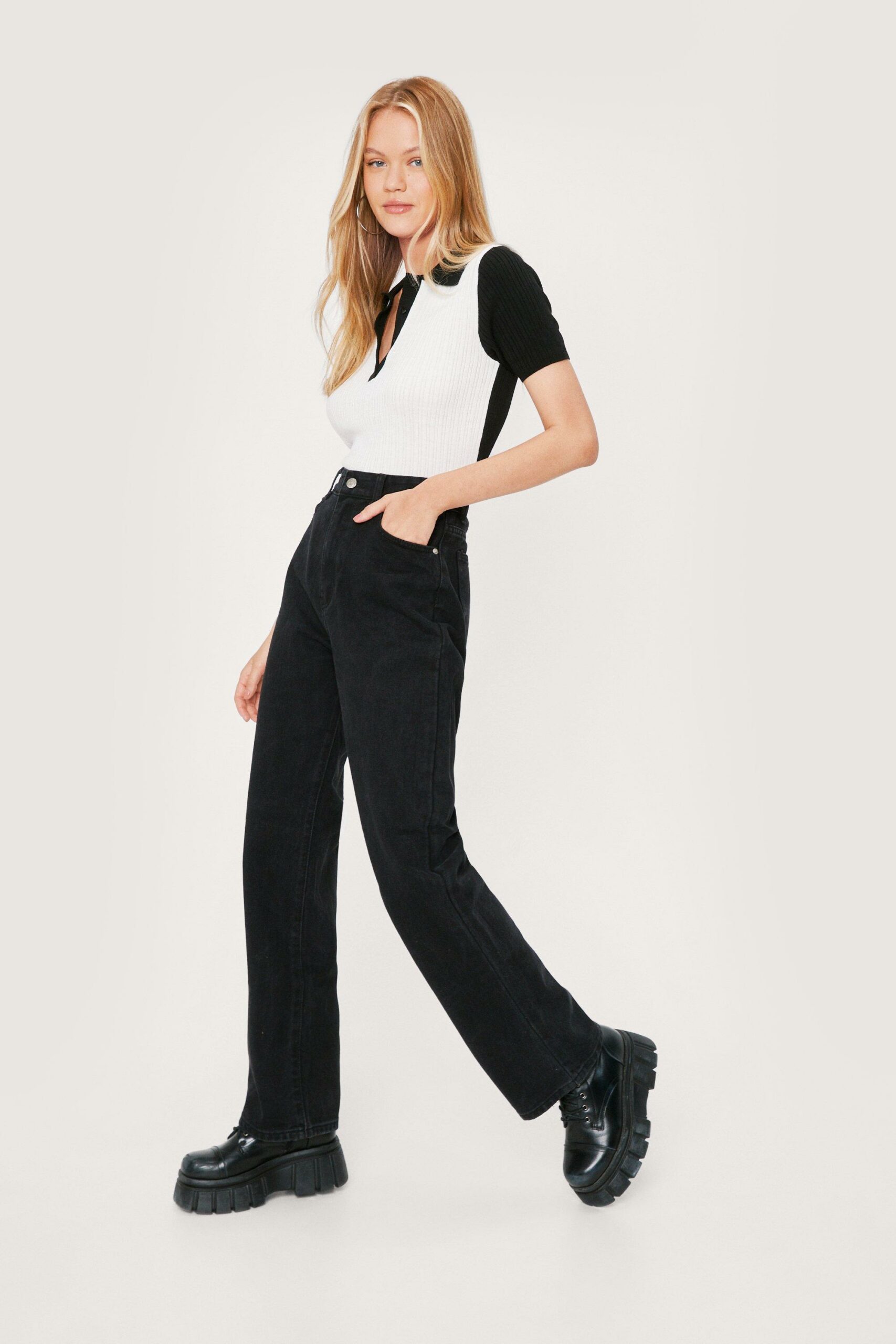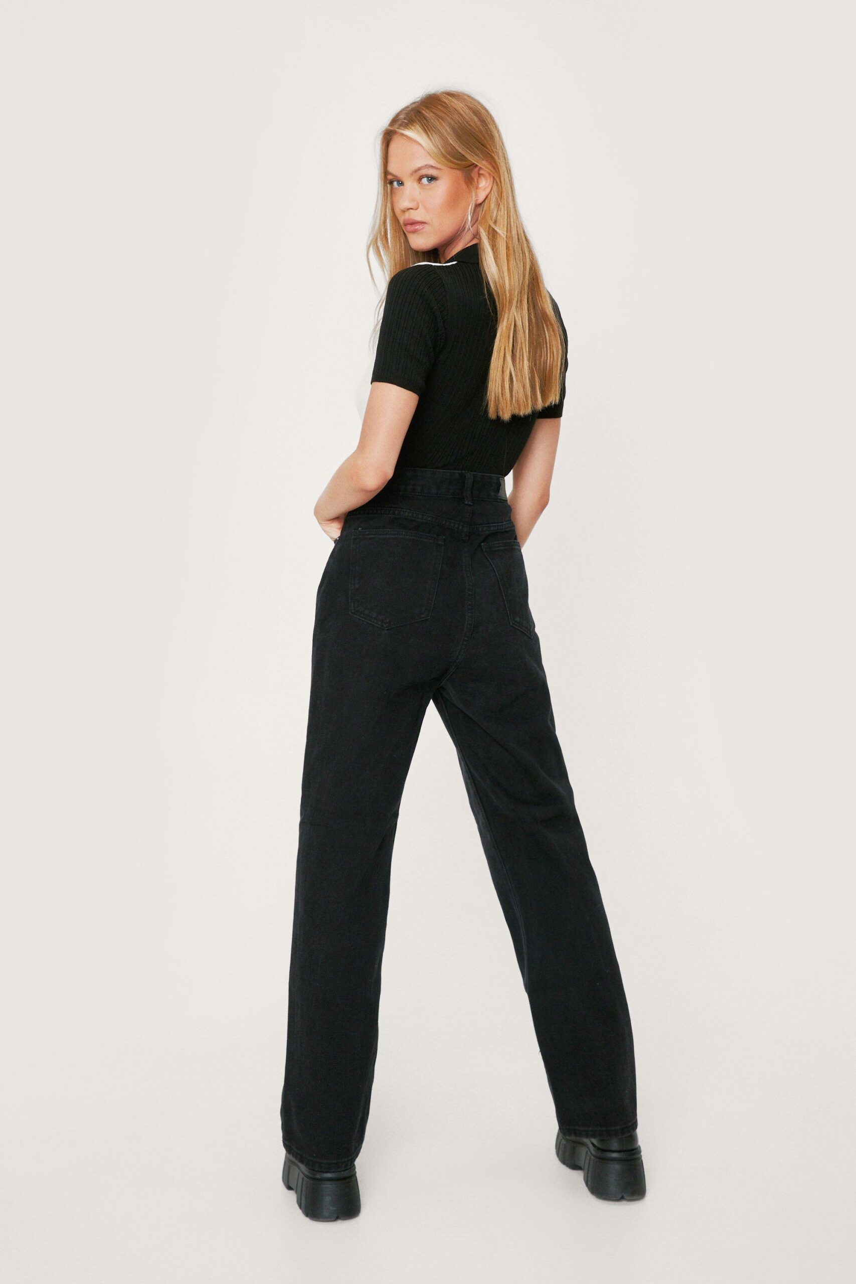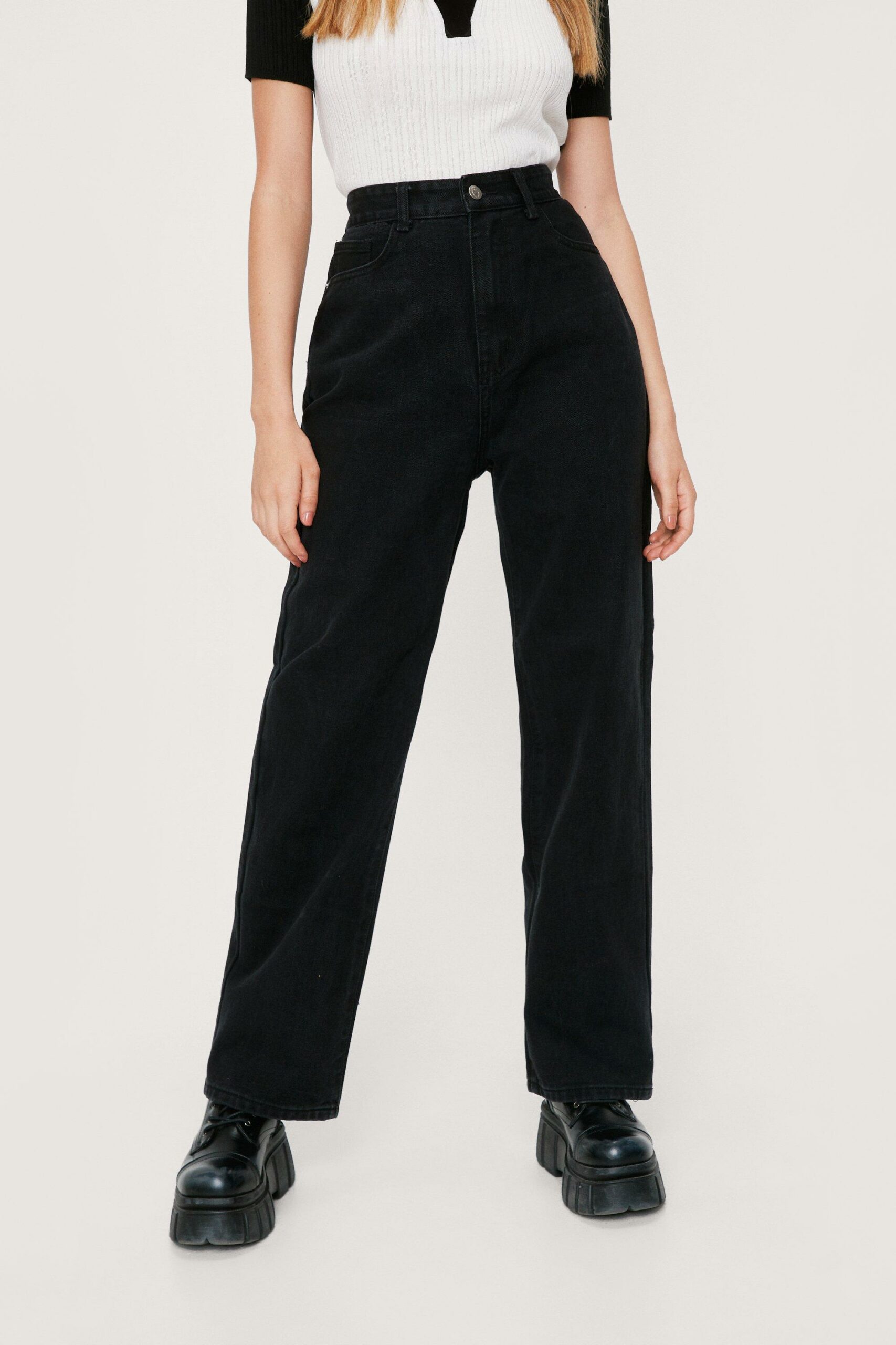 Nasty Gal czarne jeansy staight leg wysoki stan 34