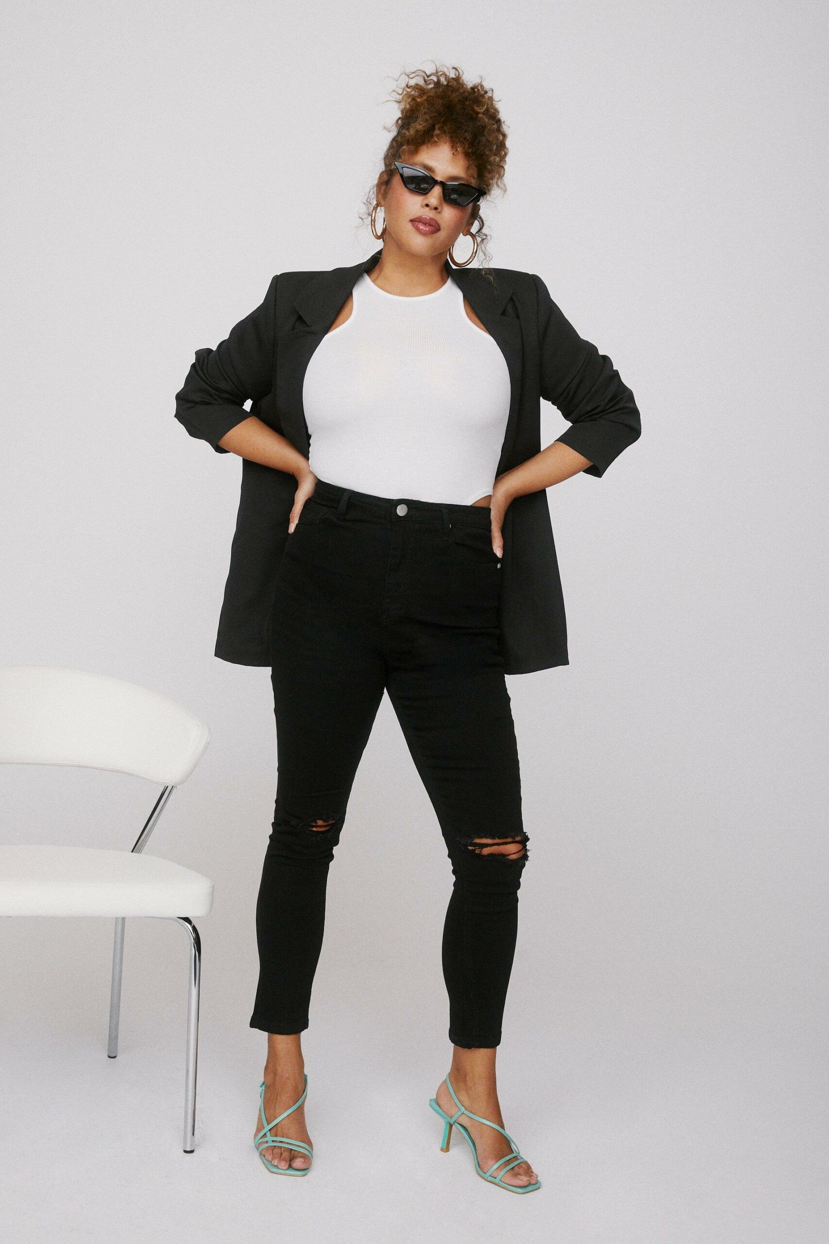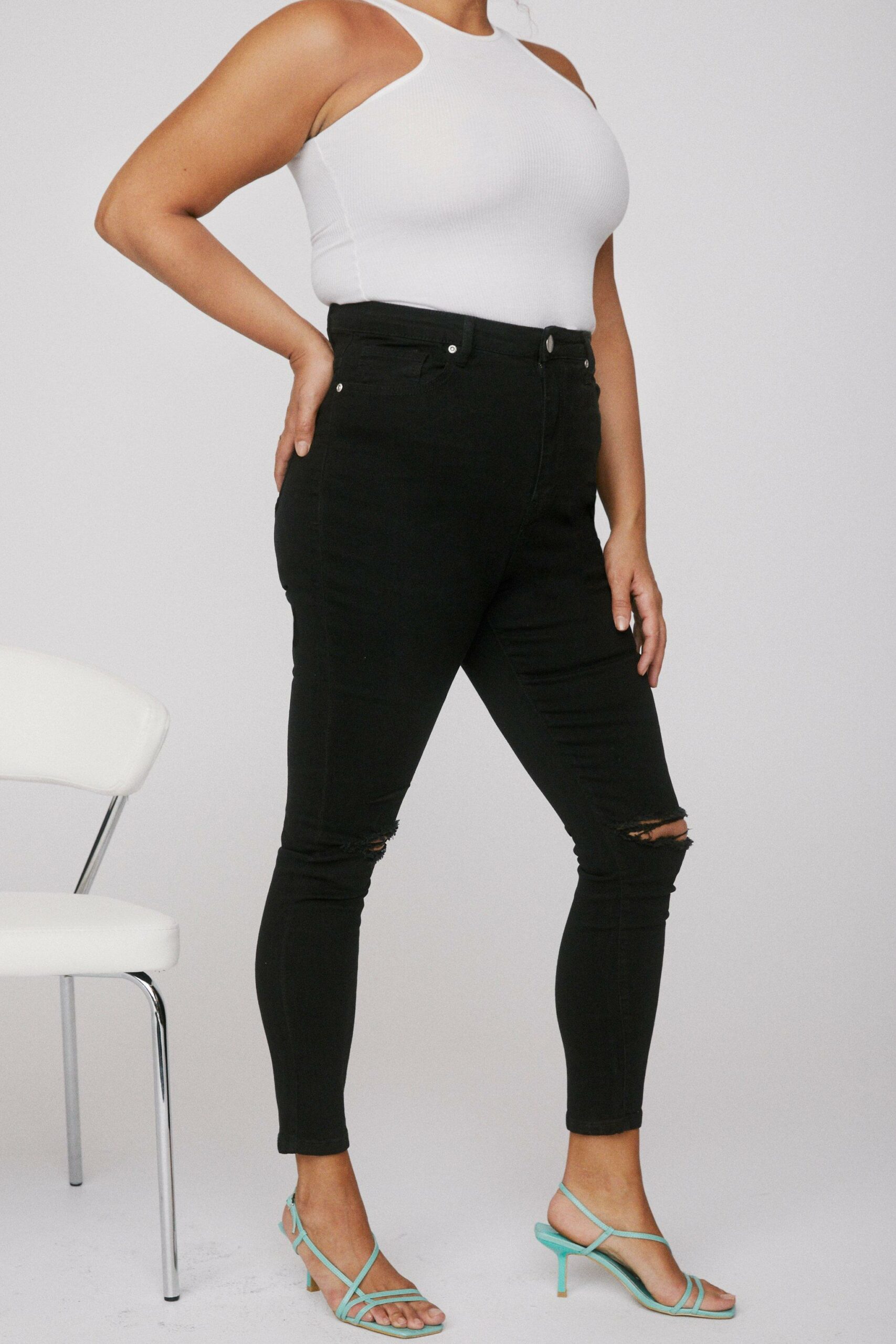 Nasty Gal damskie czarne spodnie jeansowe skinny plus size 46
