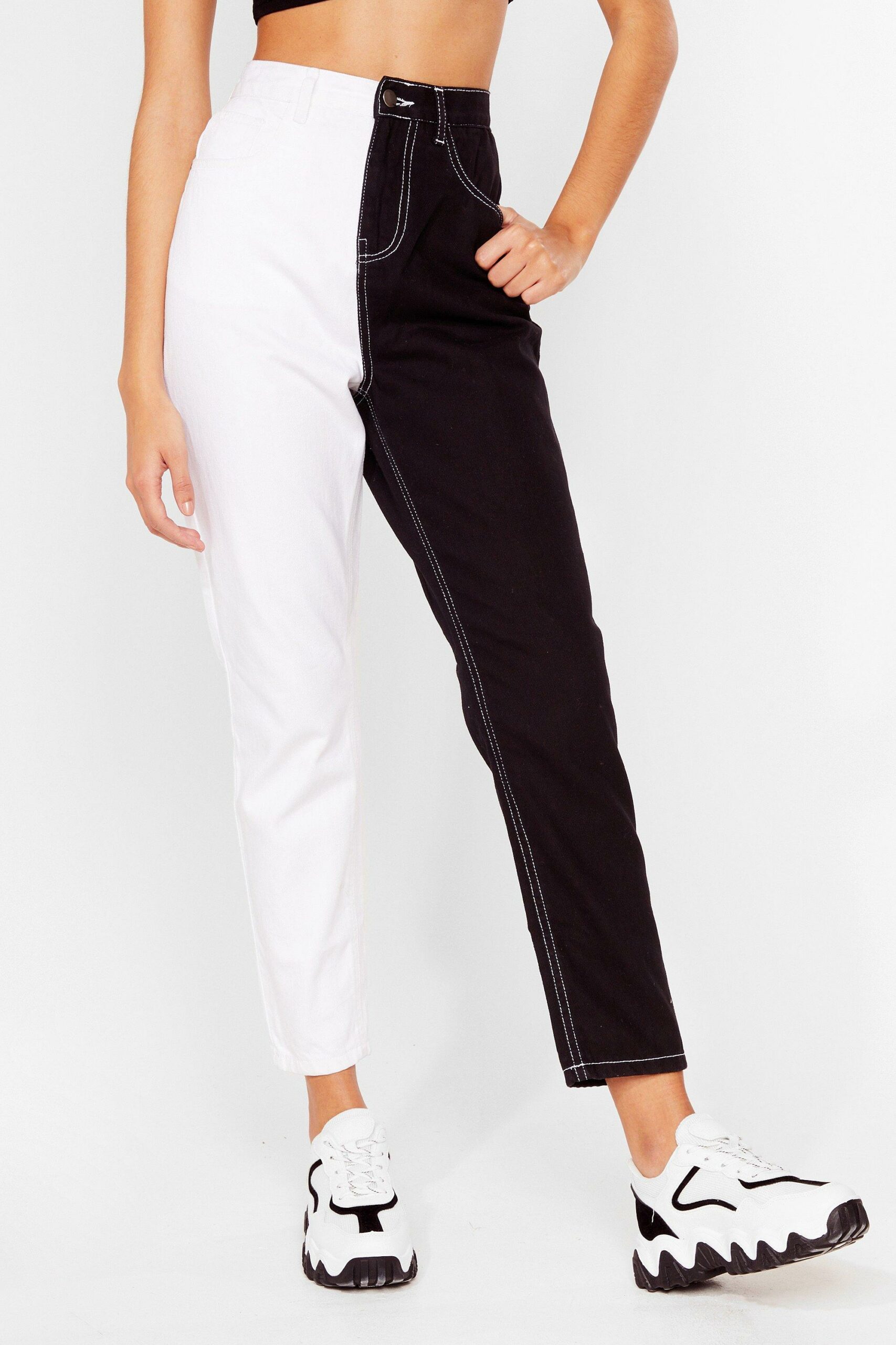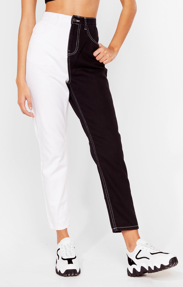 Nasty Gal dwukolorowe damskie mom jeans białe czarne defekt 38