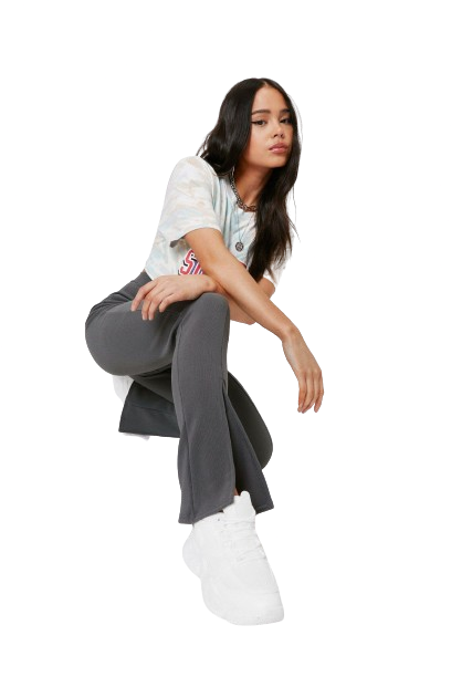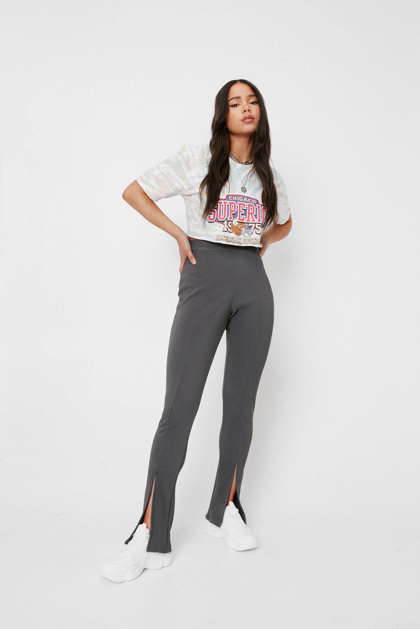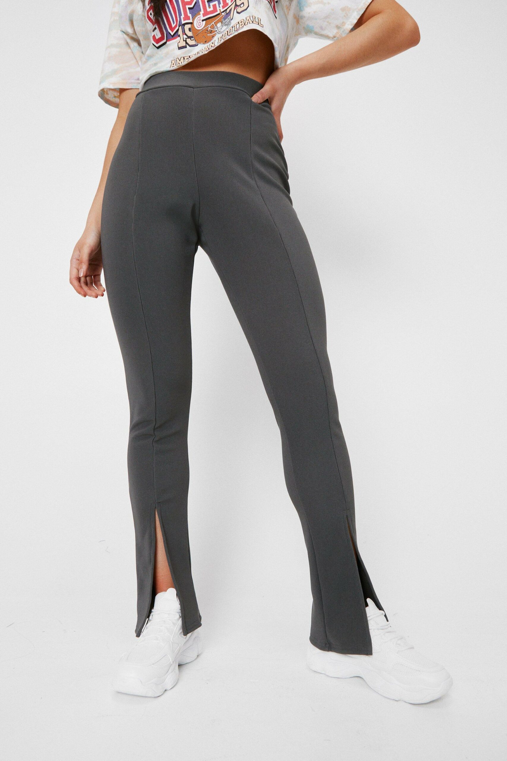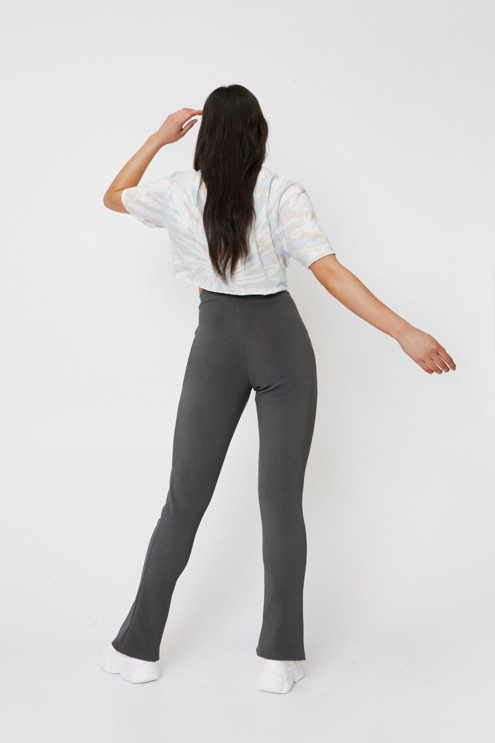 Nasty Gal grafitowe prążkowane spodnie flare z rozcięciami 34
