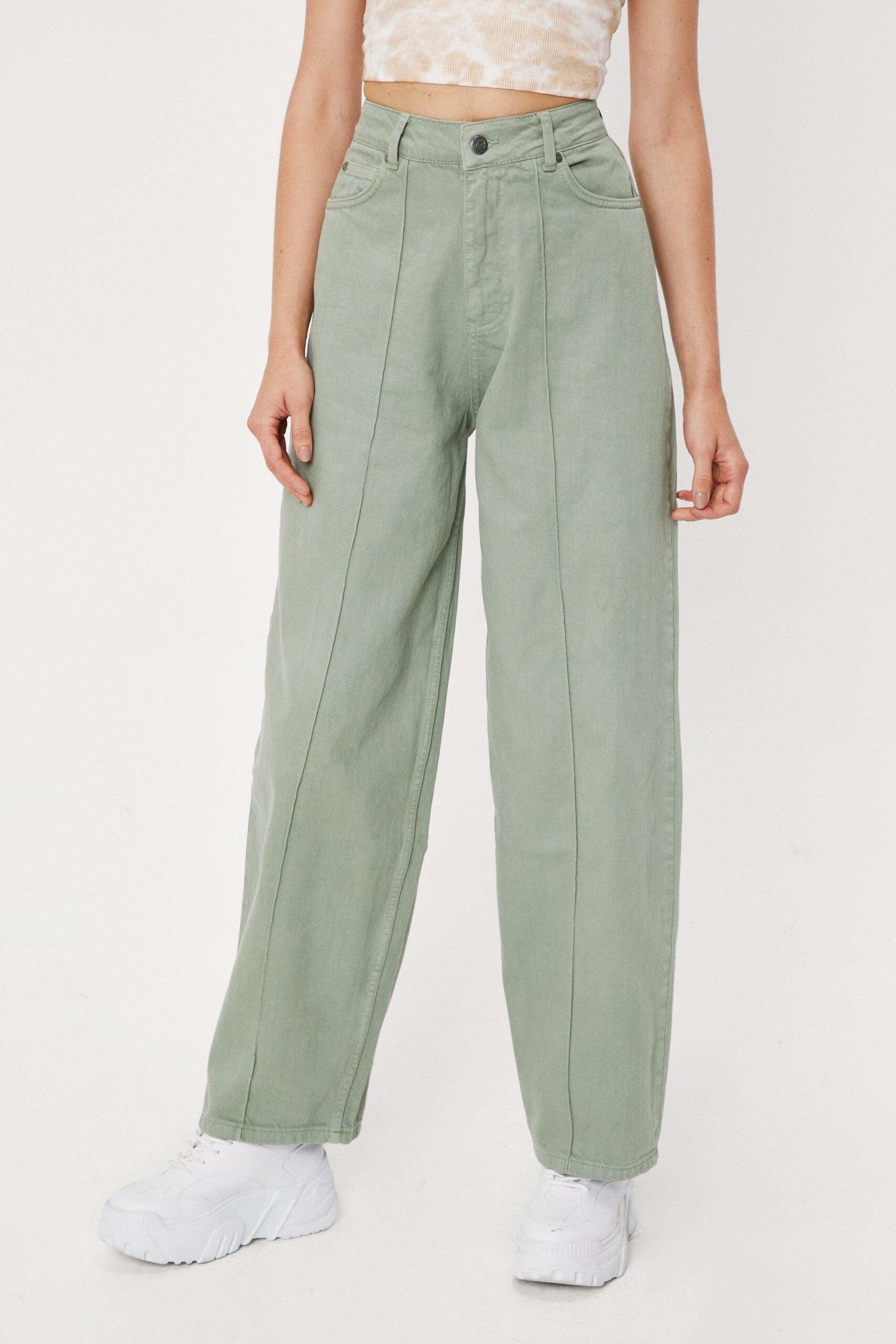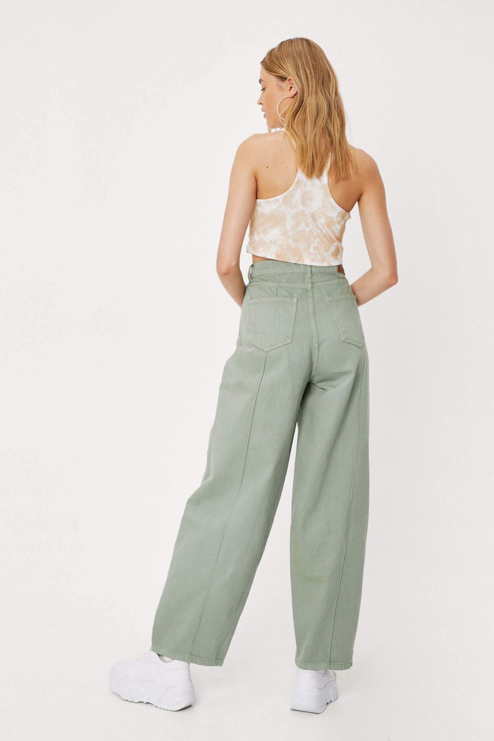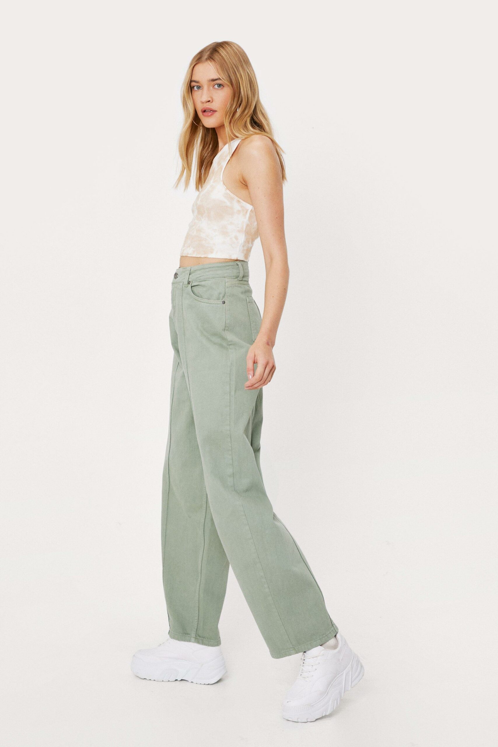 Nasty Gal jeansy damskie z szerokimi nogawkami zielone defekt 42