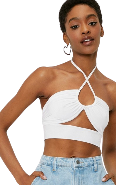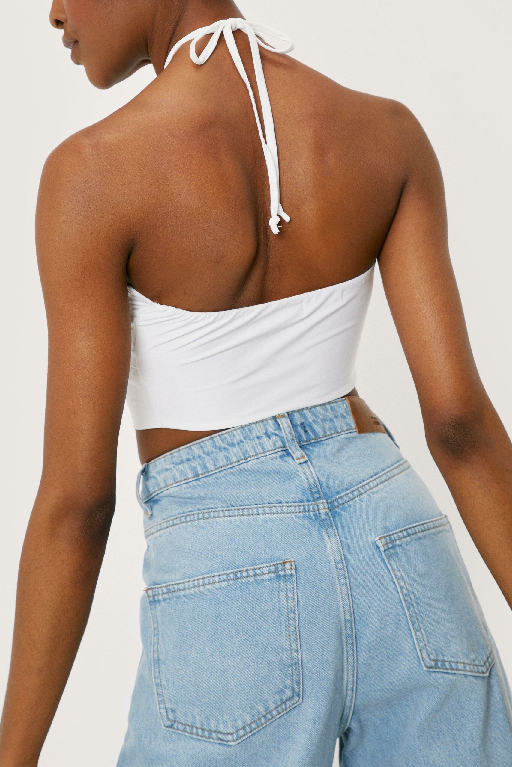 Nasty Gal krótki biały top wiązany na szyi 42