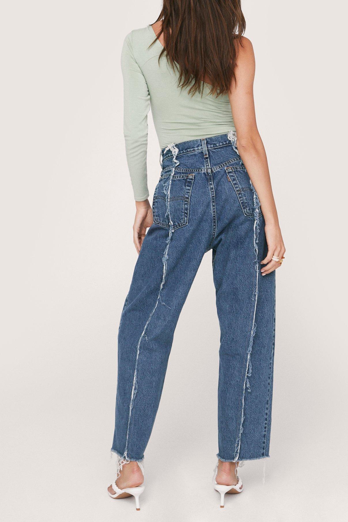 Nasty Gal Levis niebieskie jeansy vintage z przeszyciami postrzępione M