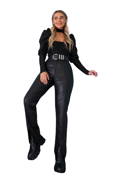 Nasty Gal skórzane spodnie damskie z rozcięciem na nogawkach czarne 38