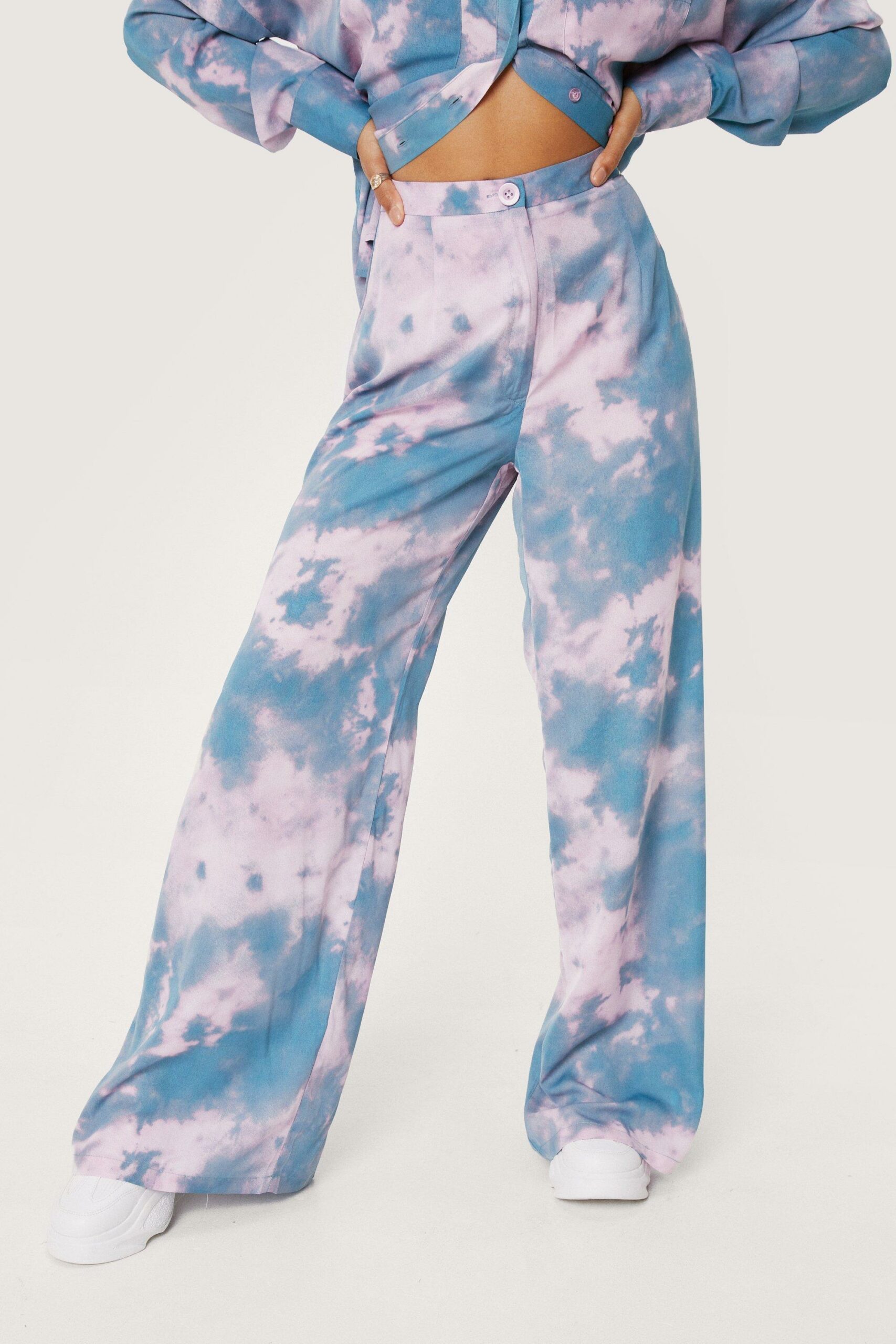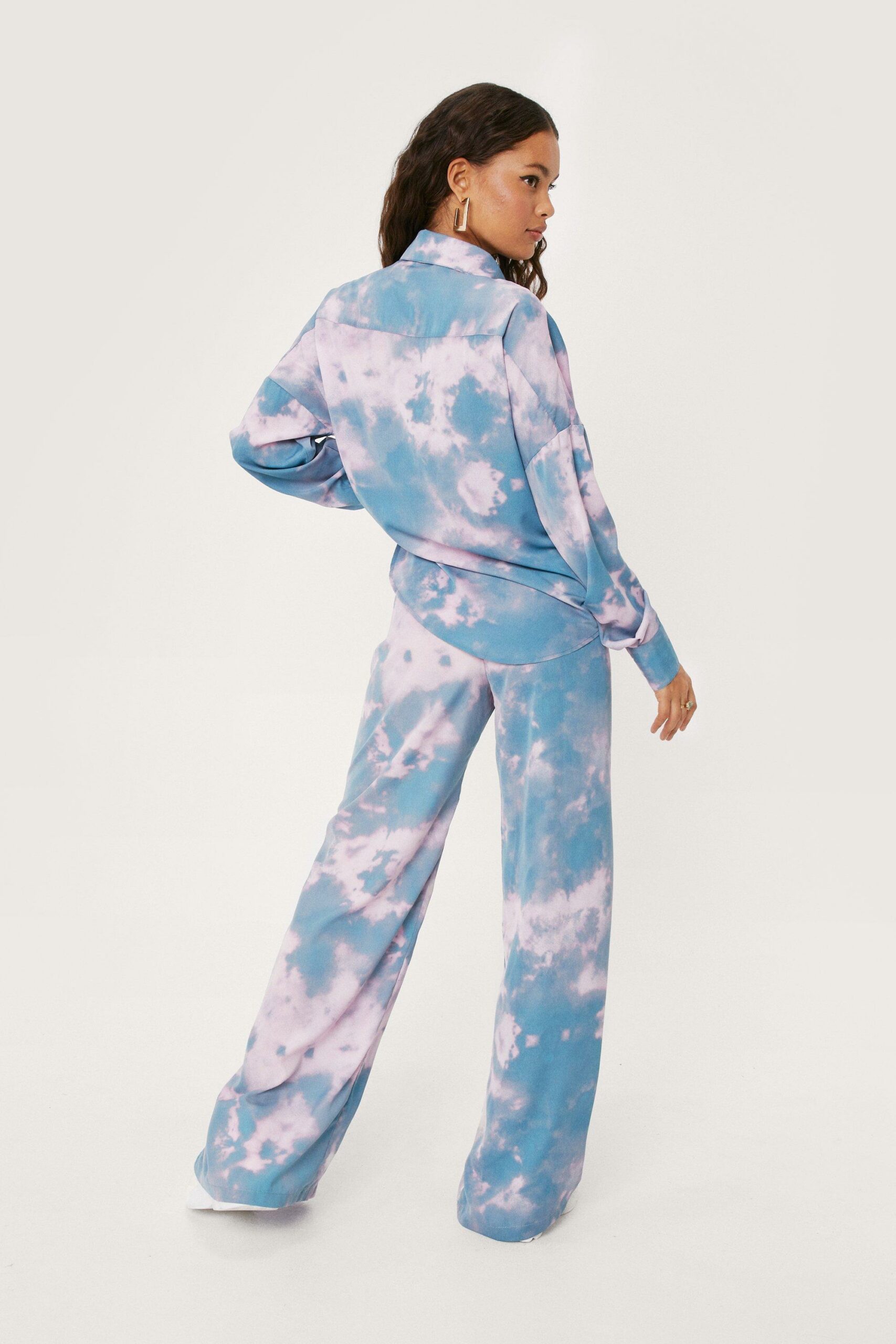 Nasty Gal spodnie z szerokimi nogawkami tie dye multikolor 38