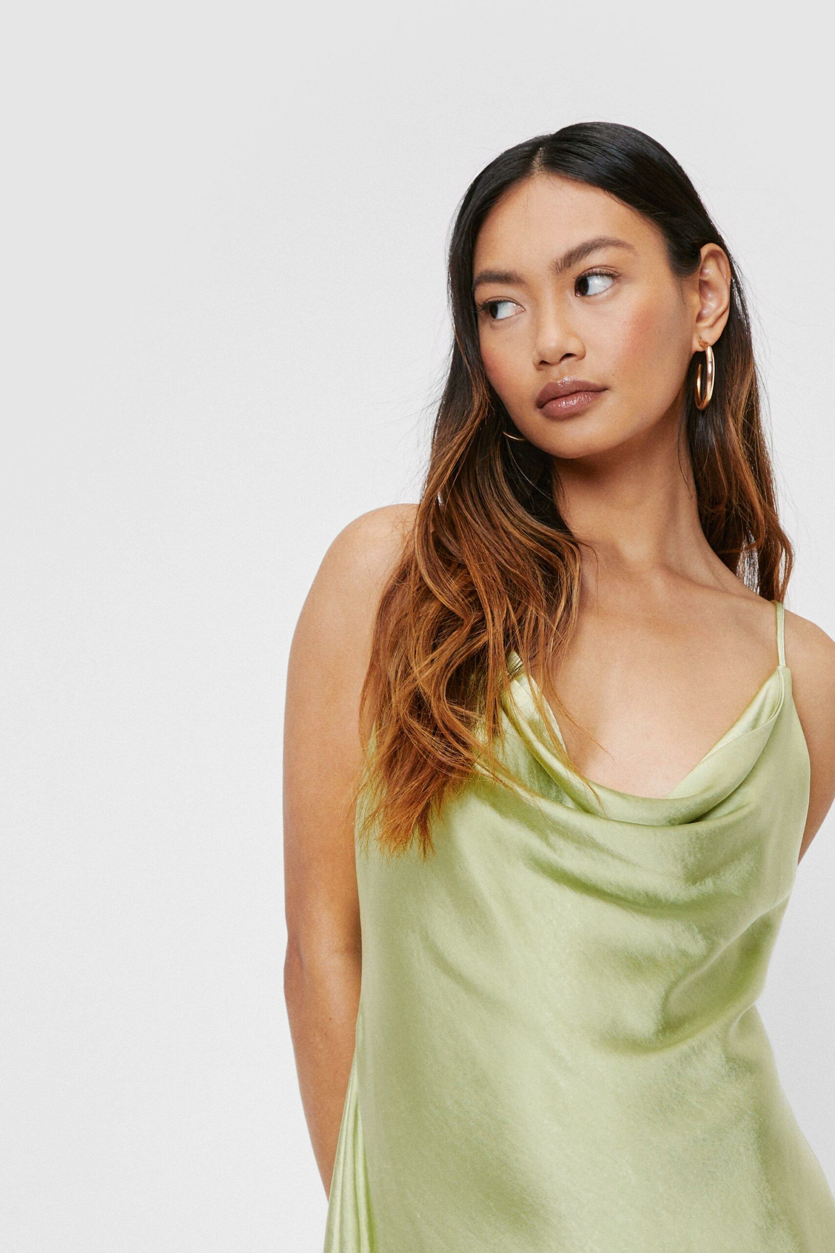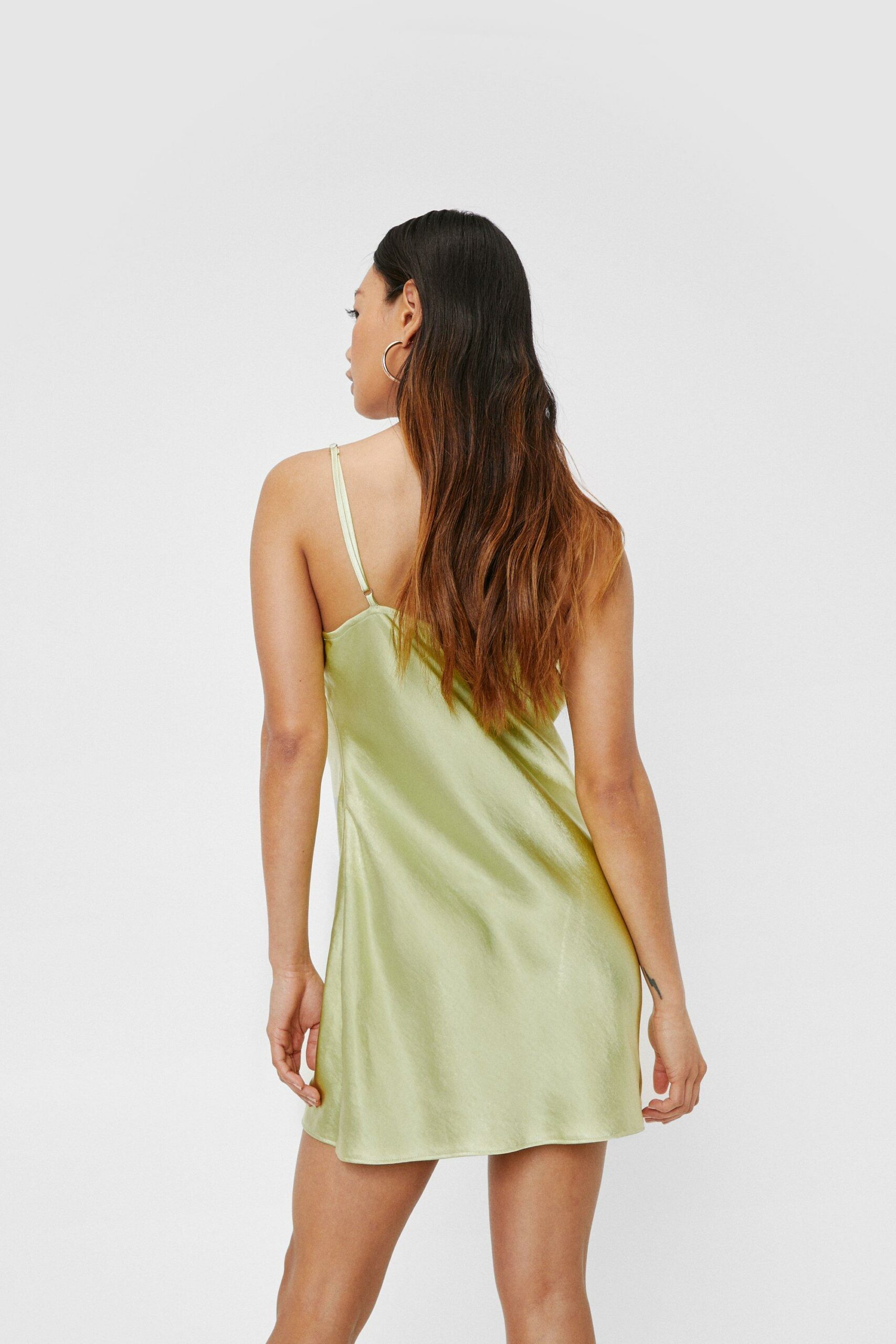 Nasty Gal zielona satynowa sukienka mini lejący dekolt defekt 34
