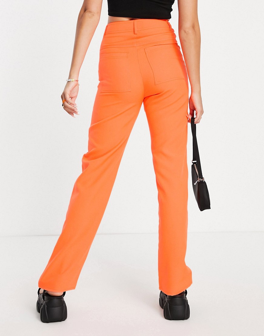 Neonowe pomarańczowe spodnie damskie o kroju baggy defekt 38