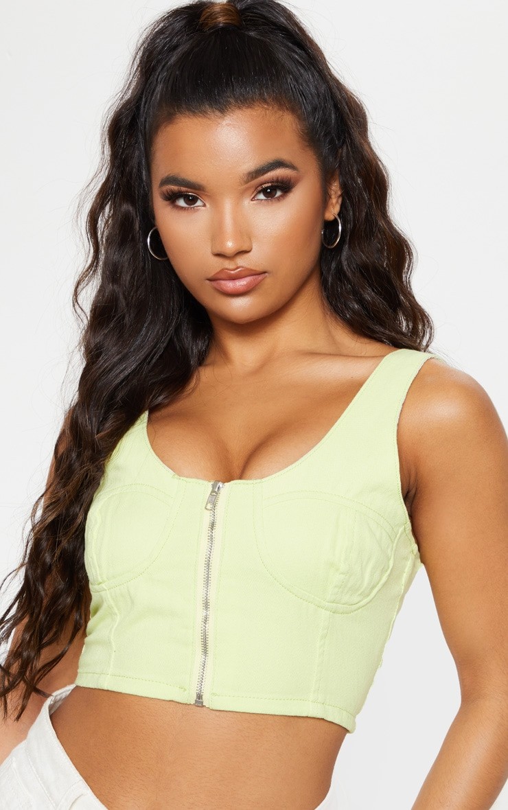 Neonowy żółty top braletka jeansowy zamek L 40