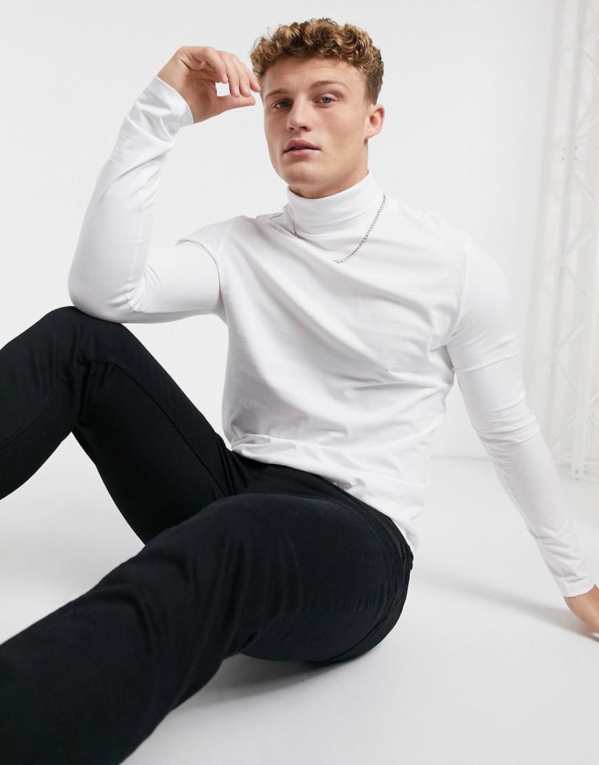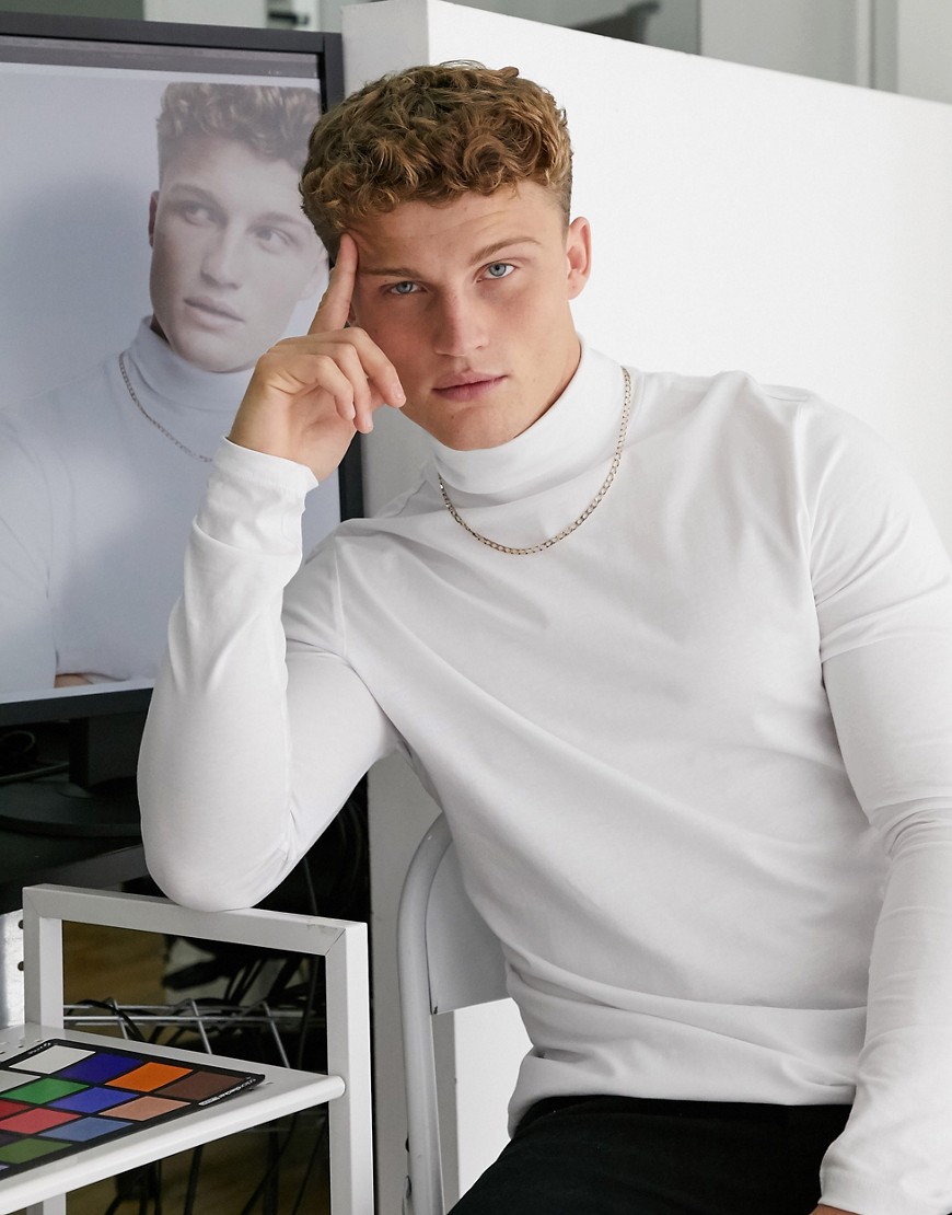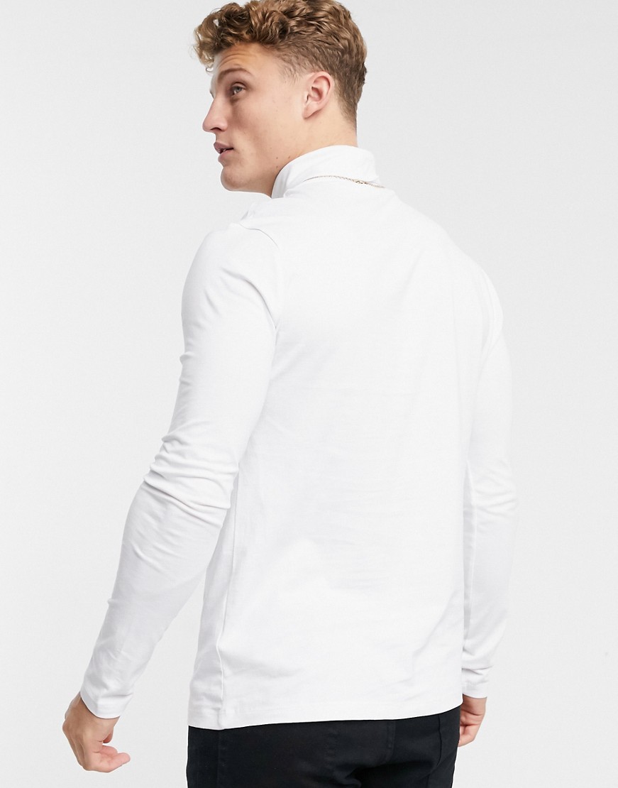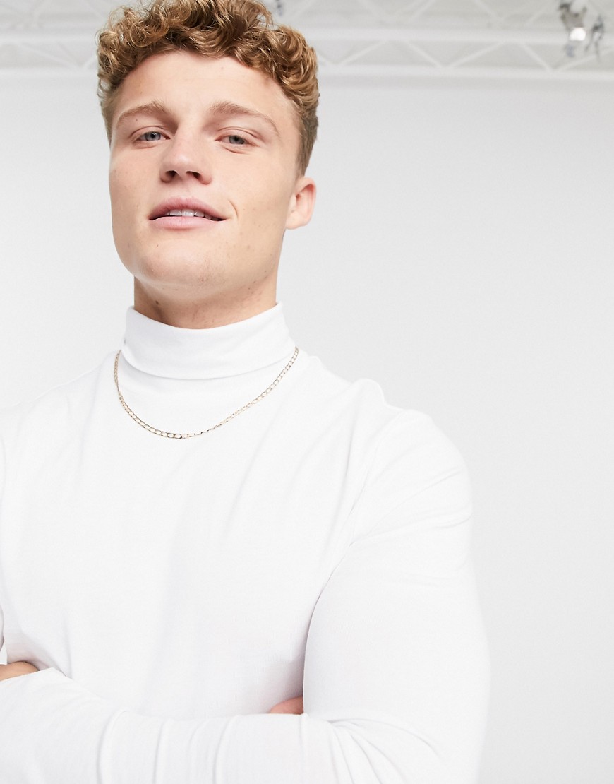New Look – Biała koszulka z długim rękawem i odwijanym golfem L