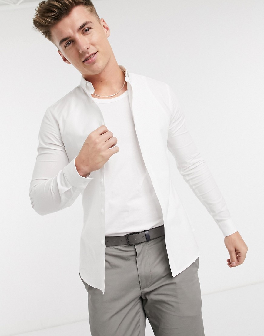 New Look biała męska koszula oxford z długim rękawem podkreślającym sylwetkę defekt S