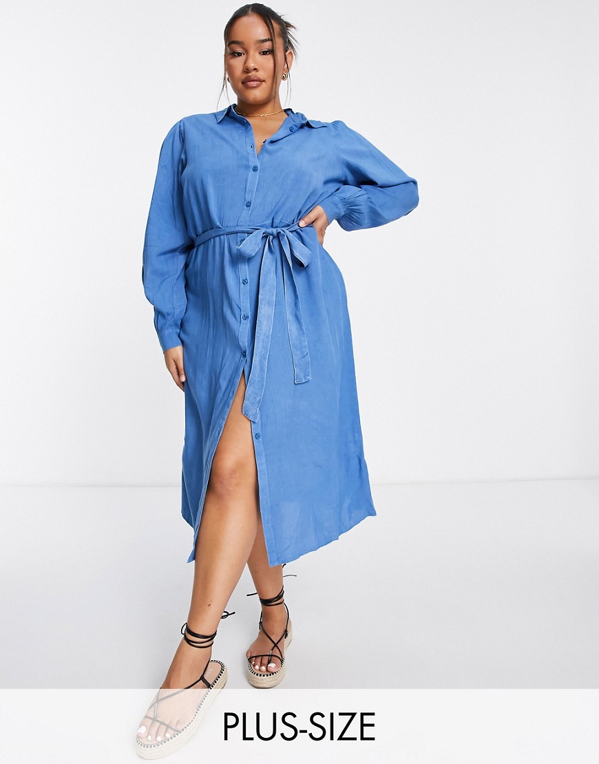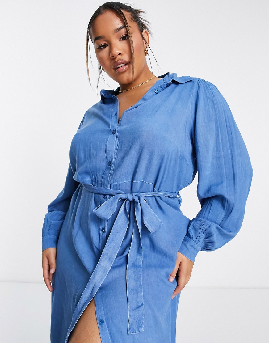 New Look Curve Niebieska jeansowa sukienka koszulowa defekt 48