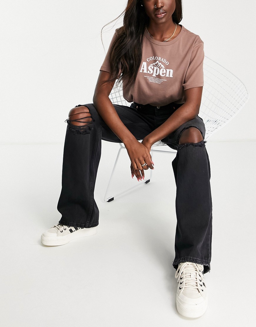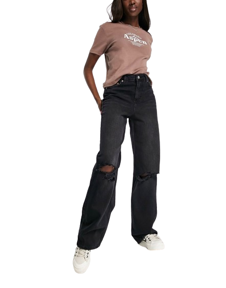 New Look czarne damskie jeansy wide leg przetarcia defekt 42
