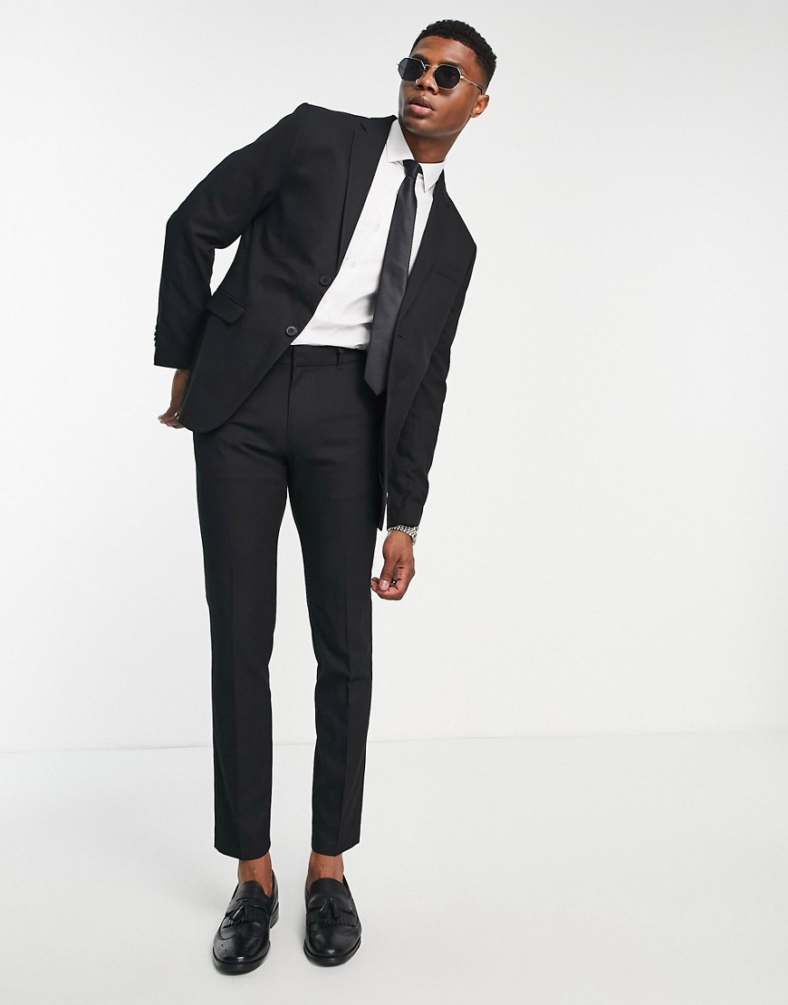 New Look Czarne spodnie garniturowe o obcisłym kroju używane W36 L32
