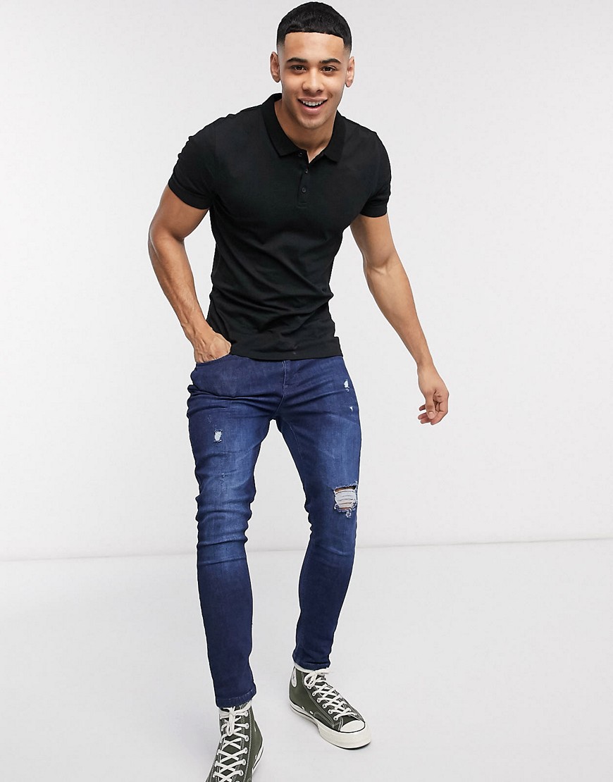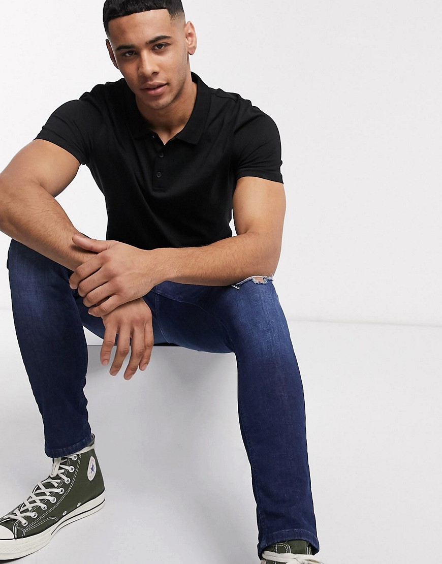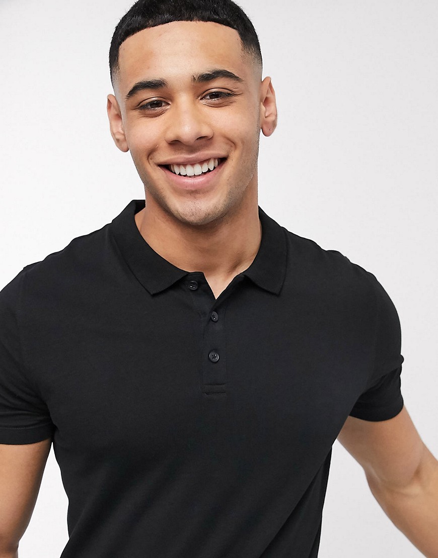 New Look czarny t-shirt męski polo muscle fit M