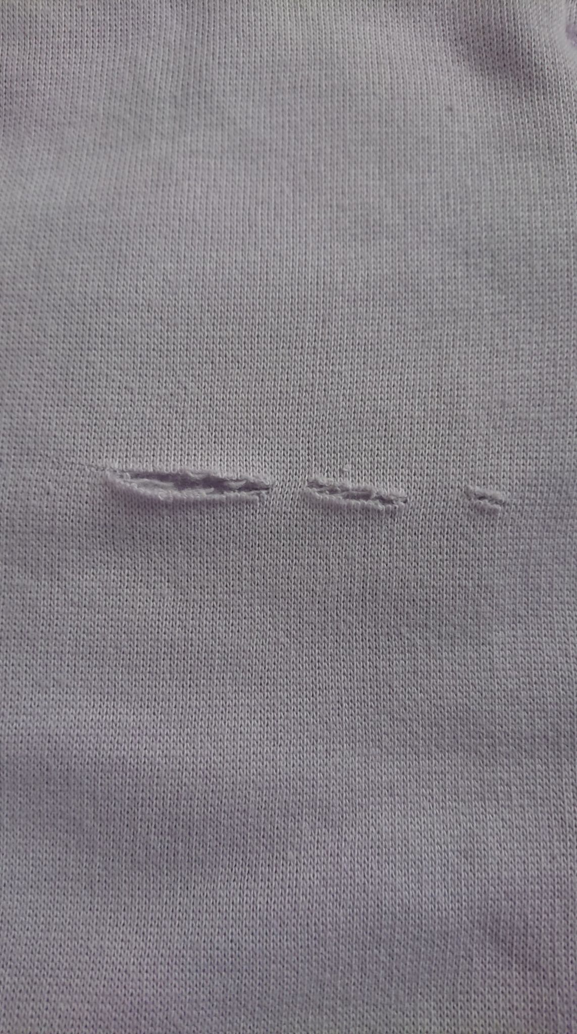 • DEFEKT:  z przodu u góry pod kieszenią przecięty materiał