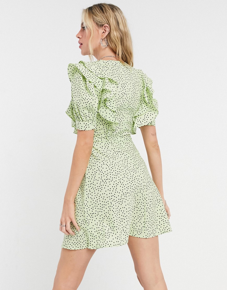 New Look jasnozielona sukienka mini z falbankami i nadrukiem w serduszka 44