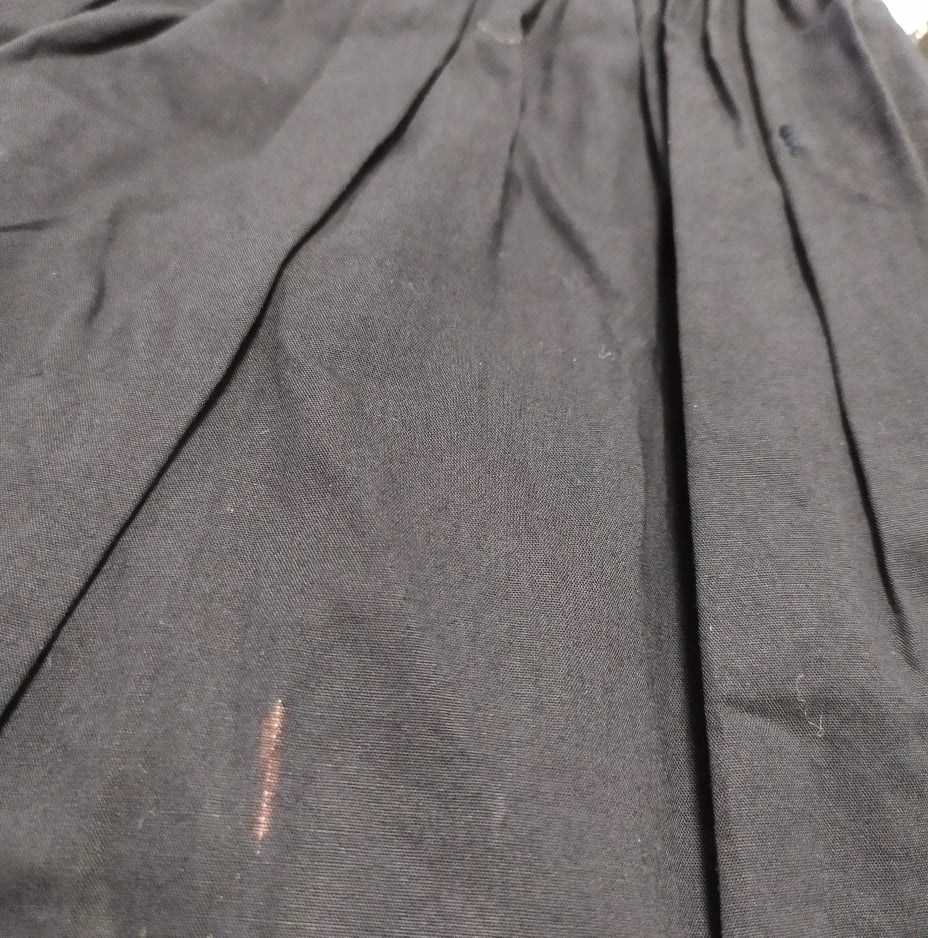 - DEFEKT : przebarwiona nitka z tyłu spódnicy, z racji kroju i faktury spódnicy wada praktycznie niewidoczna, zdjęcia w galerii produktu