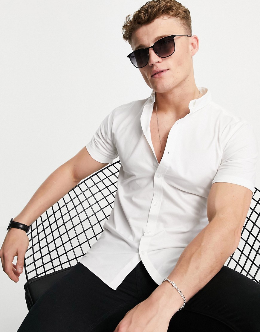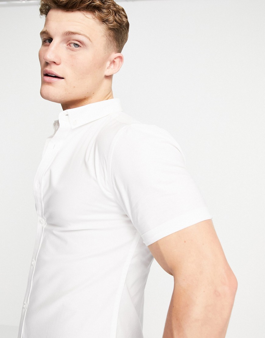 New Look męska biała koszula oxford z krótkimi rękawami slim fit S